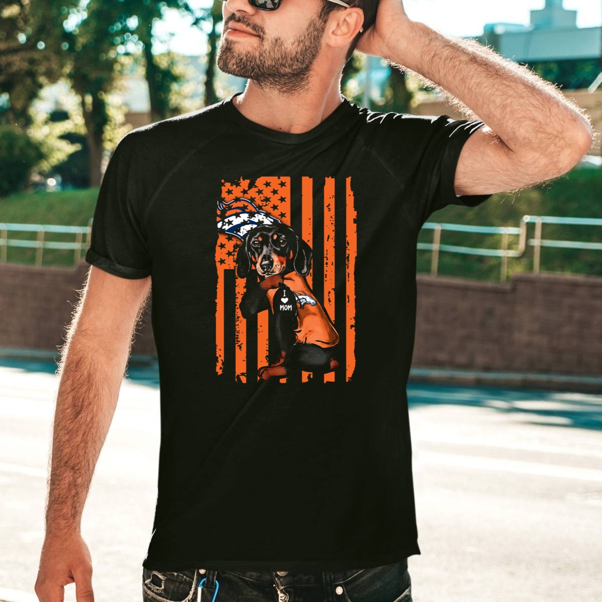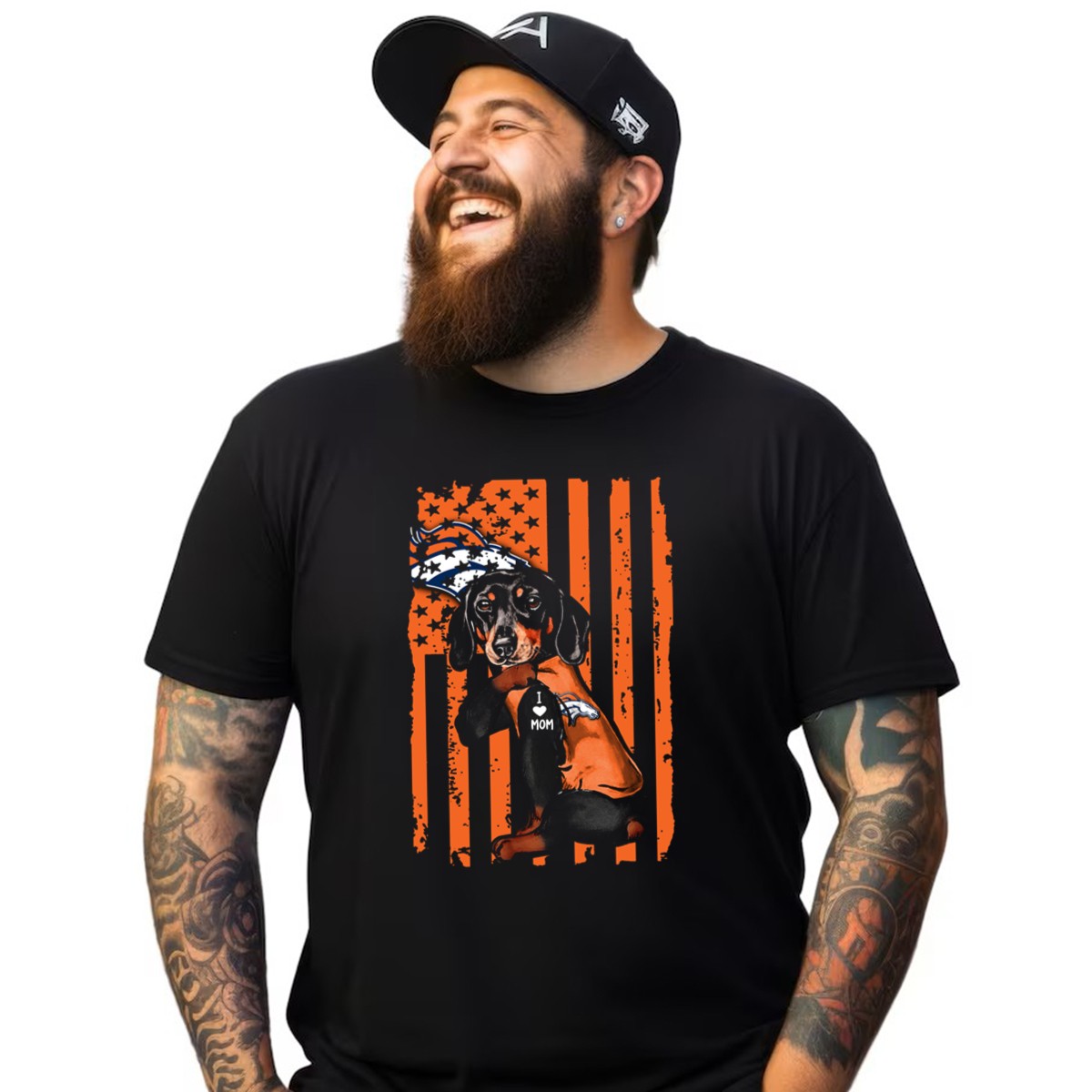 Dachshund DENVER BRONCOS I Love Mom Orange American Flag T-Shirt
