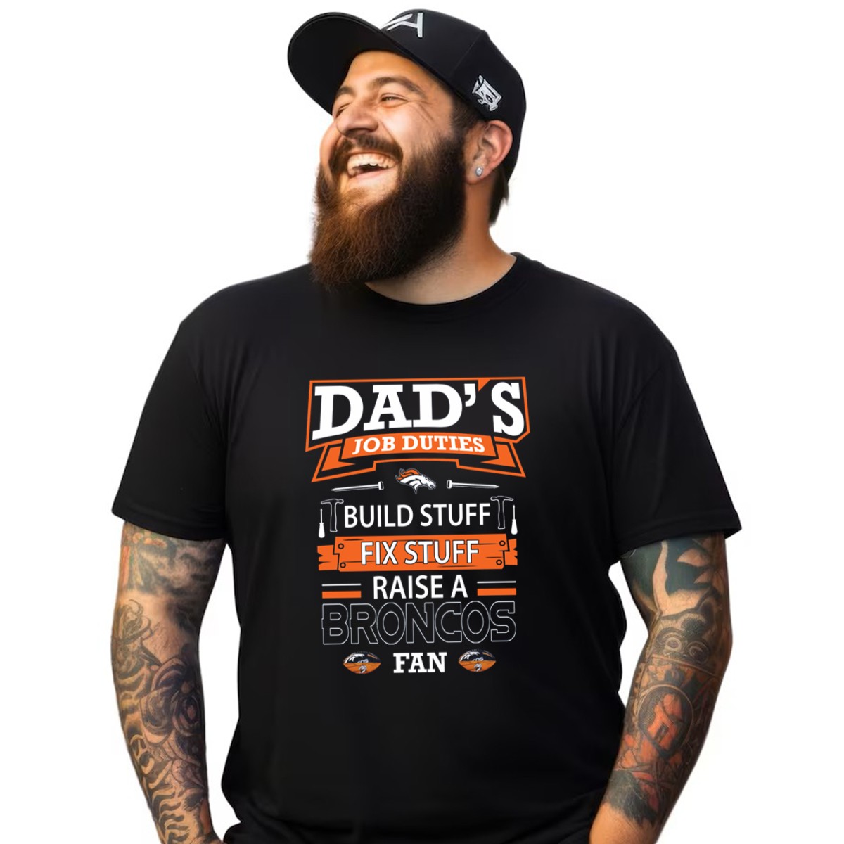 Dads Job Duties Build Stuff Fix Stuff Raise A Broncos Fan Denver Broncos T-Shirt