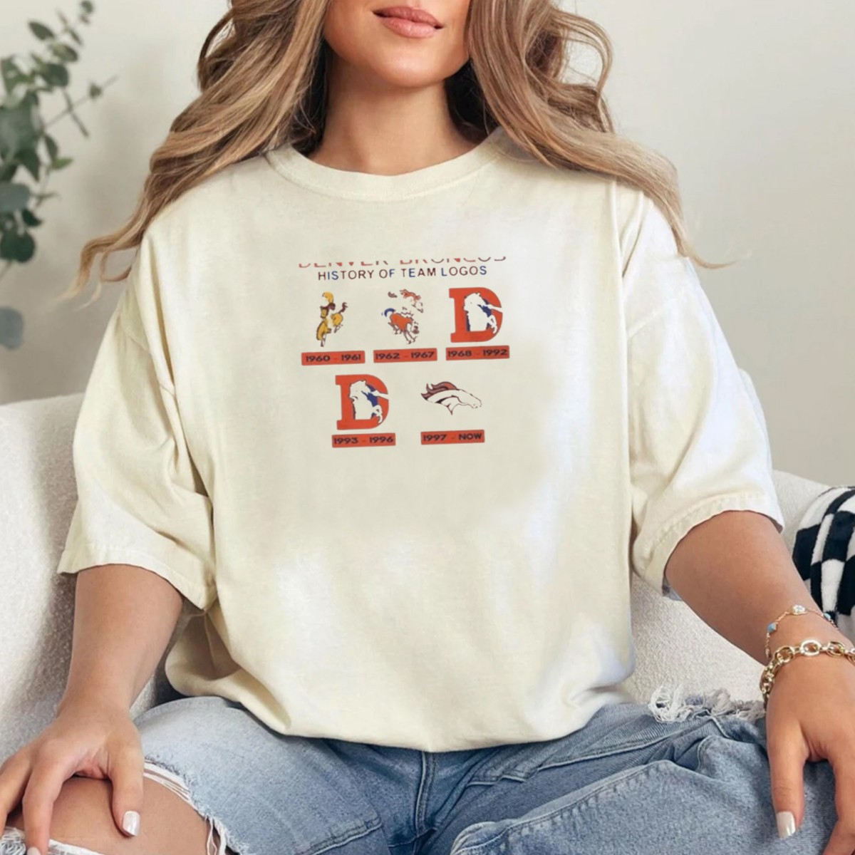 Denver Broncos 1960 1961 1962 1967 1968 1992 1993 1996 1997 Now History of Team T-Shirt