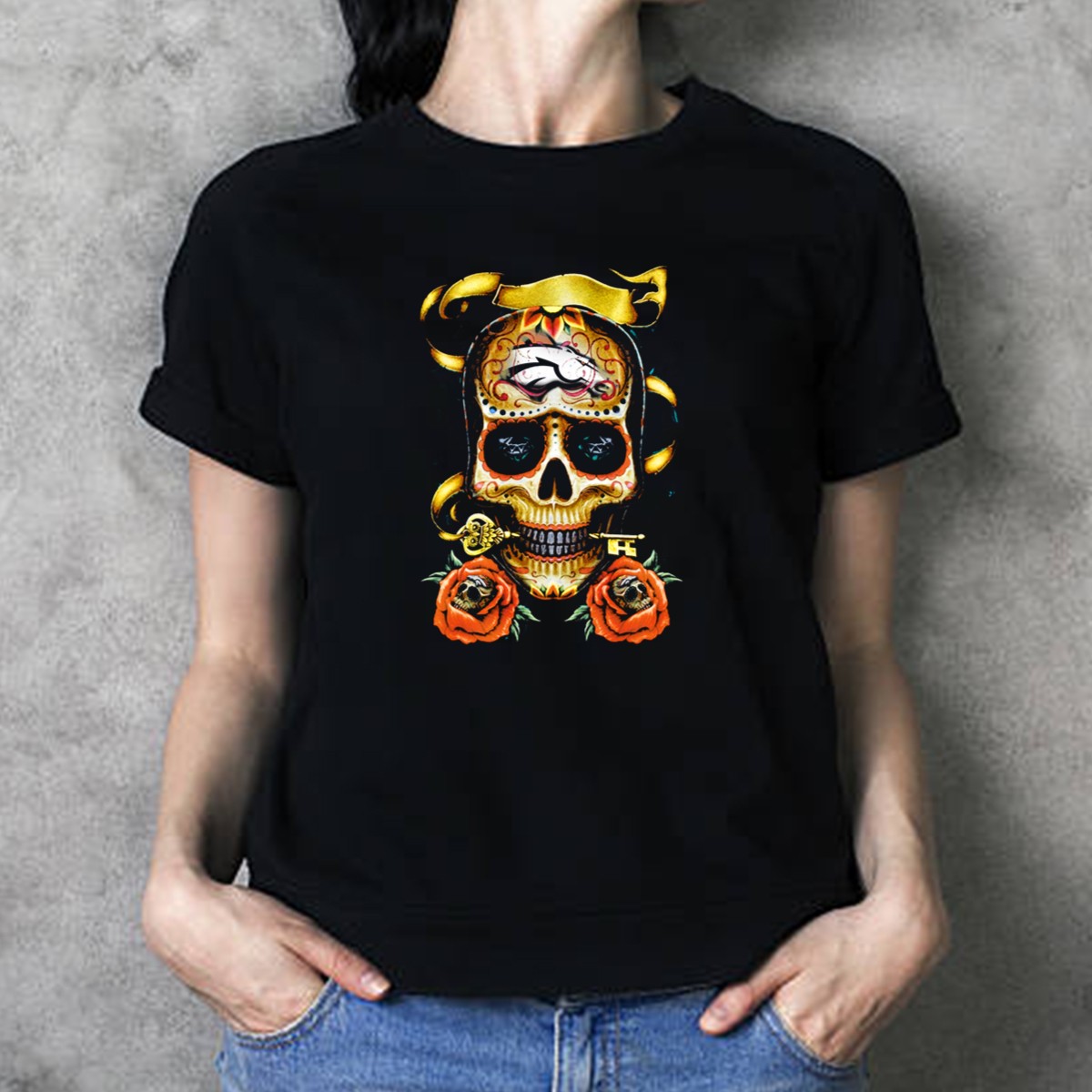 Celebrate your love for the Denver Broncos with our vibrant Sugar Skull Roses Key Ribbon T-Shirt! This fan-made design is perfect for devoted supporters looking to showcase their team spirit in a unique and stylish way. Ideal for casual outings, themed events, or simply daily wear, this shirt combines comfort with a striking design that stands out in any crowd. Made with care in the USA, it’s the perfect addition to your Broncos collection!