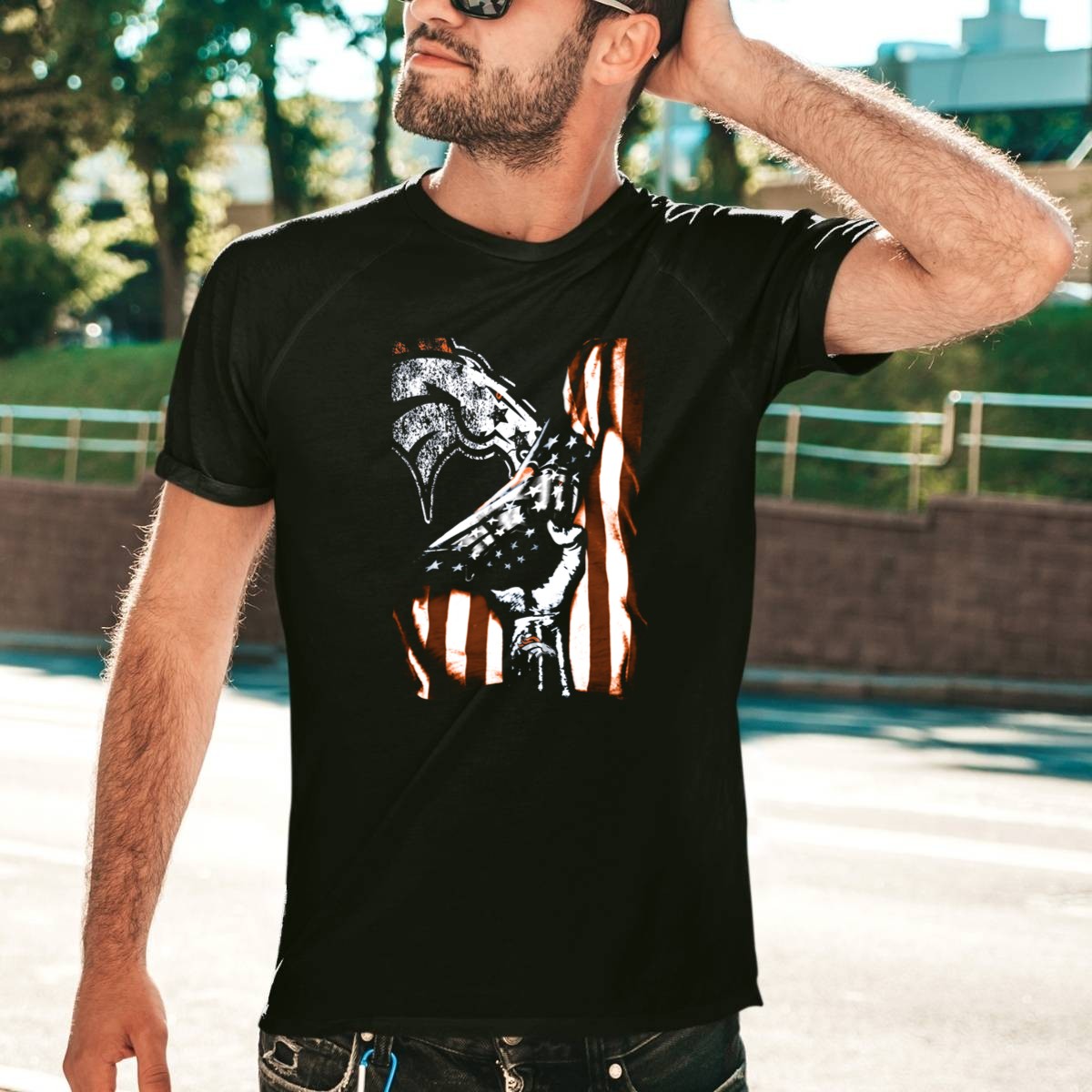 Denver Broncos American Flag Fist T-Shirt