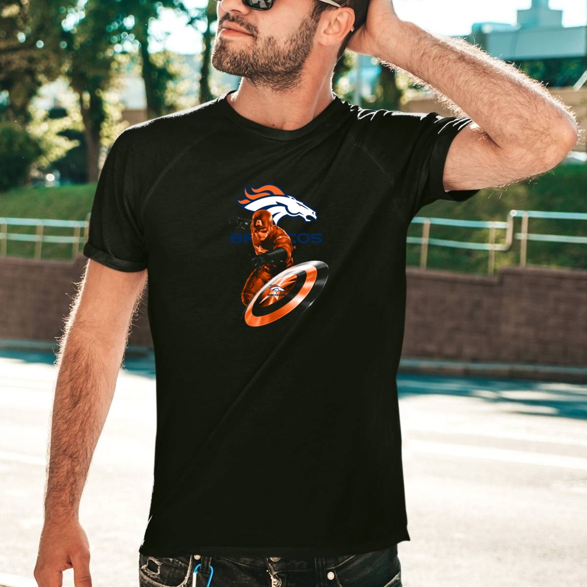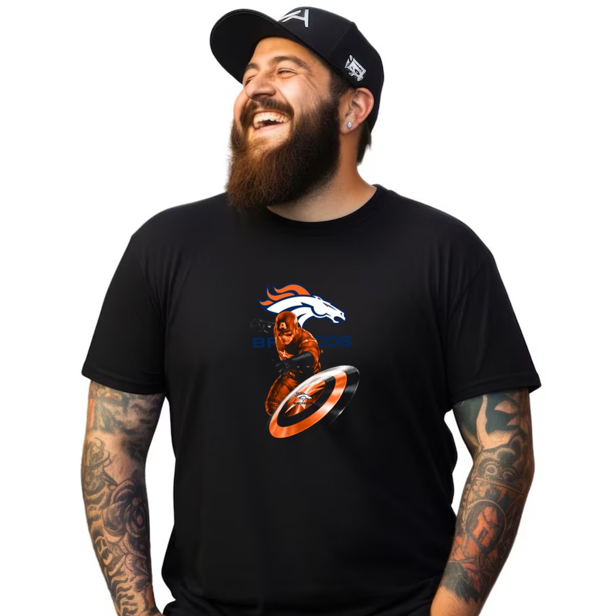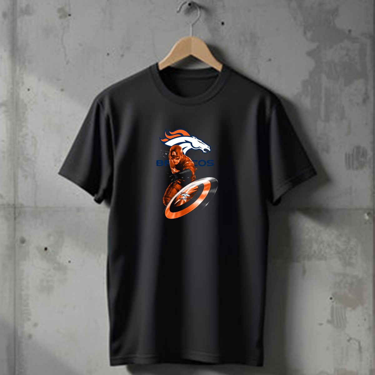 Show your team spirit and superhero pride with our Denver Broncos Captain America Marvel Fans T-Shirt! Perfect for die-hard Broncos fans and Marvel enthusiasts alike, this shirt combines iconic comic book flair with your favorite football team. Whether you’re cheering from the stands, hanging out with friends at a themed event, or just enjoying a casual day out, this uniquely designed tee is sure to turn heads and spark conversations. Proudly printed in the USA, it’s a must-have for any fan looking to showcase their love for the Broncos and Captain America.
