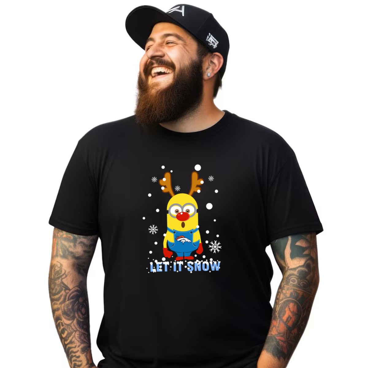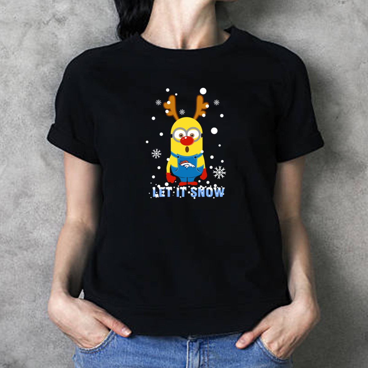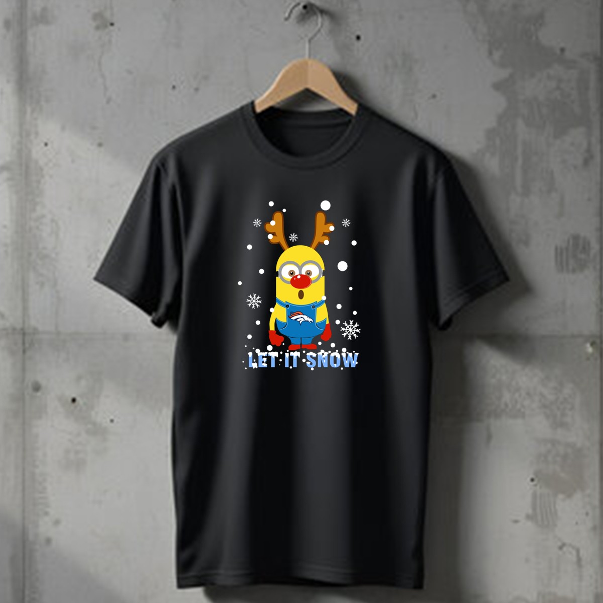 Denver Broncos Christmas Minion Let It Snow T-Shirt