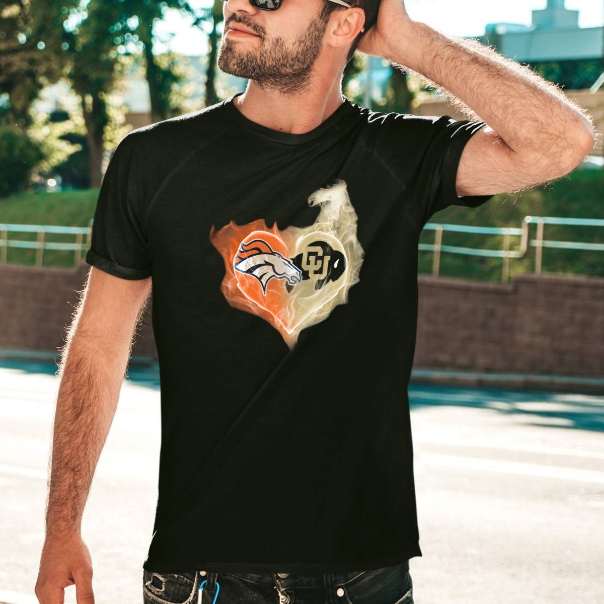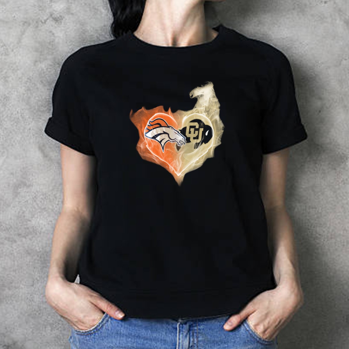 Denver Broncos Colorado Buffaloes Heart Fusion T-Shirt
