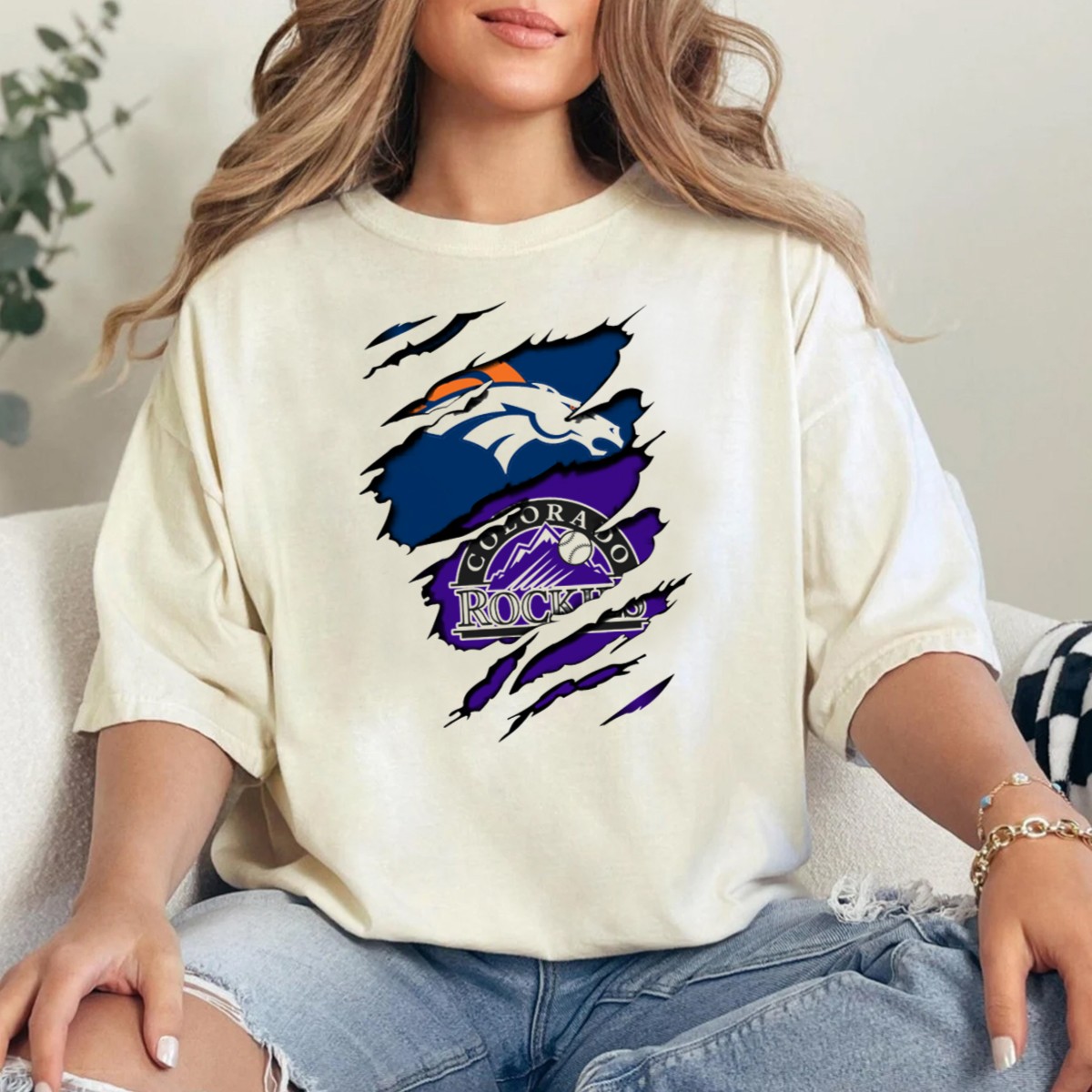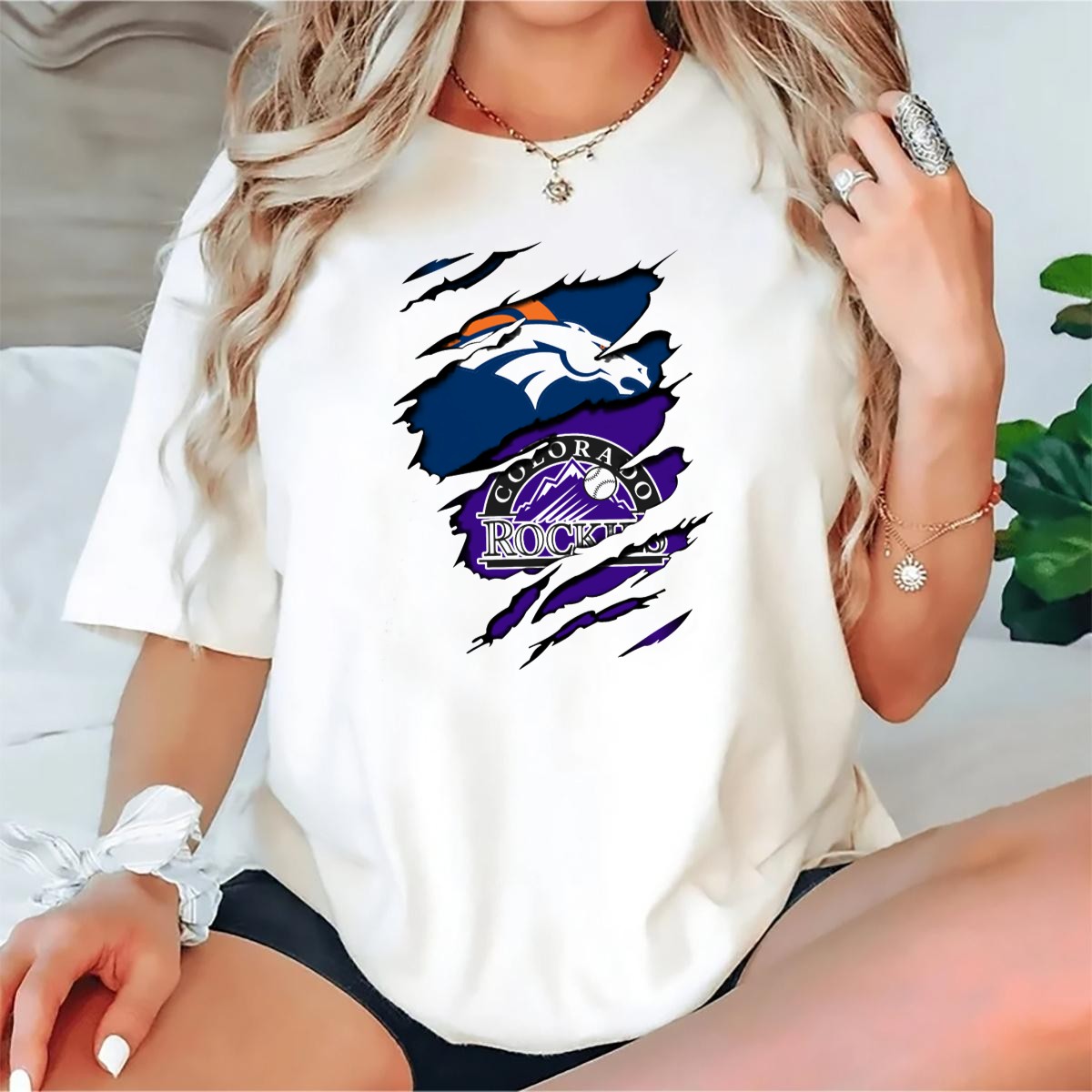 Show your unwavering support for the Denver Broncos and Colorado Rockies with this unique fan-made crossover T-shirt! Perfect for die-hard sports enthusiasts, this shirt is designed for casual outings, themed events, or just lounging around while you cheer for your favorite teams. Made with a soft, durable, and breathable fabric, this classic fit T-shirt ensures comfort and style, making it a must-have addition to your wardrobe.