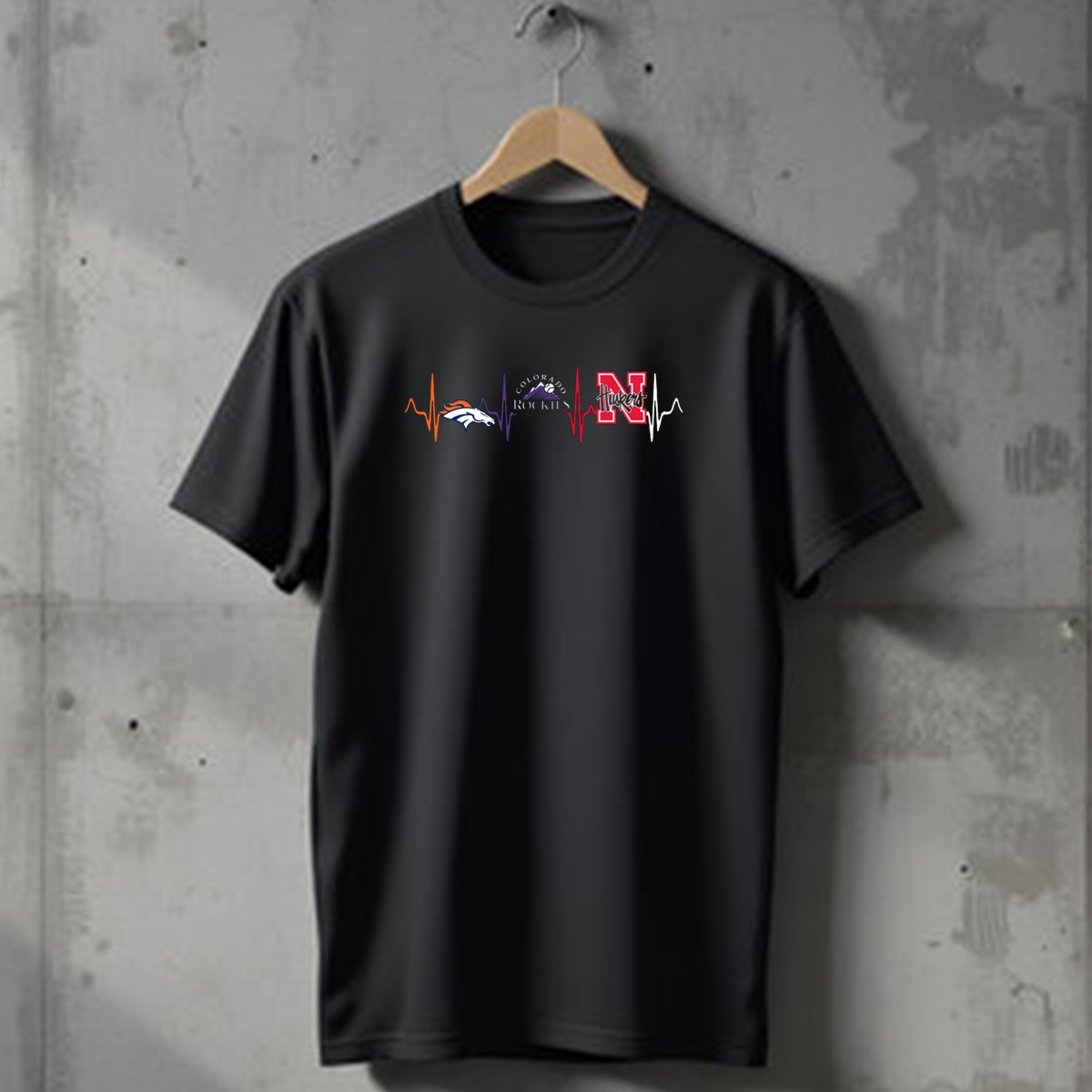Show your unwavering support for your favorite teams with our Denver Broncos, Colorado Rockies, and Nebraska Cornhuskers Heartbeat T-Shirt! This fan-made design is perfect for passionate sports enthusiasts who want to wear their pride on their sleeve. Whether you’re heading to a game, attending a themed event, or just enjoying a casual day out, this shirt promises comfort and style. Made with high-quality materials and printed in the USA, it’s a must-have for any true fan’s wardrobe.