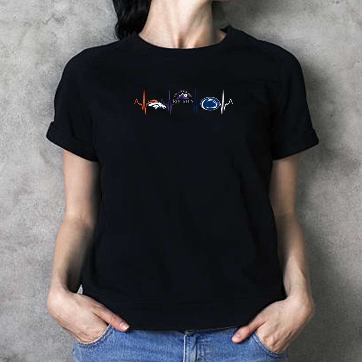 Denver Broncos Colorado Rockies Penn State Nittany Lions Heartbeat T-Shirt