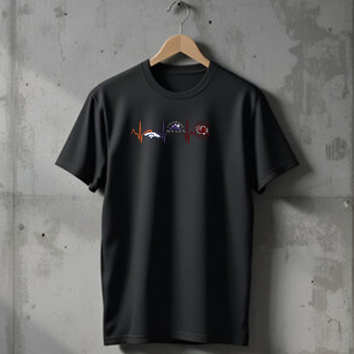 Show your passion for your favorite teams with our Denver Broncos, Colorado Rockies, and South Carolina Gamecocks Heartbeat T-Shirt! This fan-made design is perfect for sports enthusiasts who want to express their love for these iconic teams while staying comfortable and stylish. Whether you’re heading to a game, a casual outing, or just relaxing at home, this shirt is a must-have for any die-hard fan. Proudly printed in the USA, it combines quality and creativity in one unique piece.