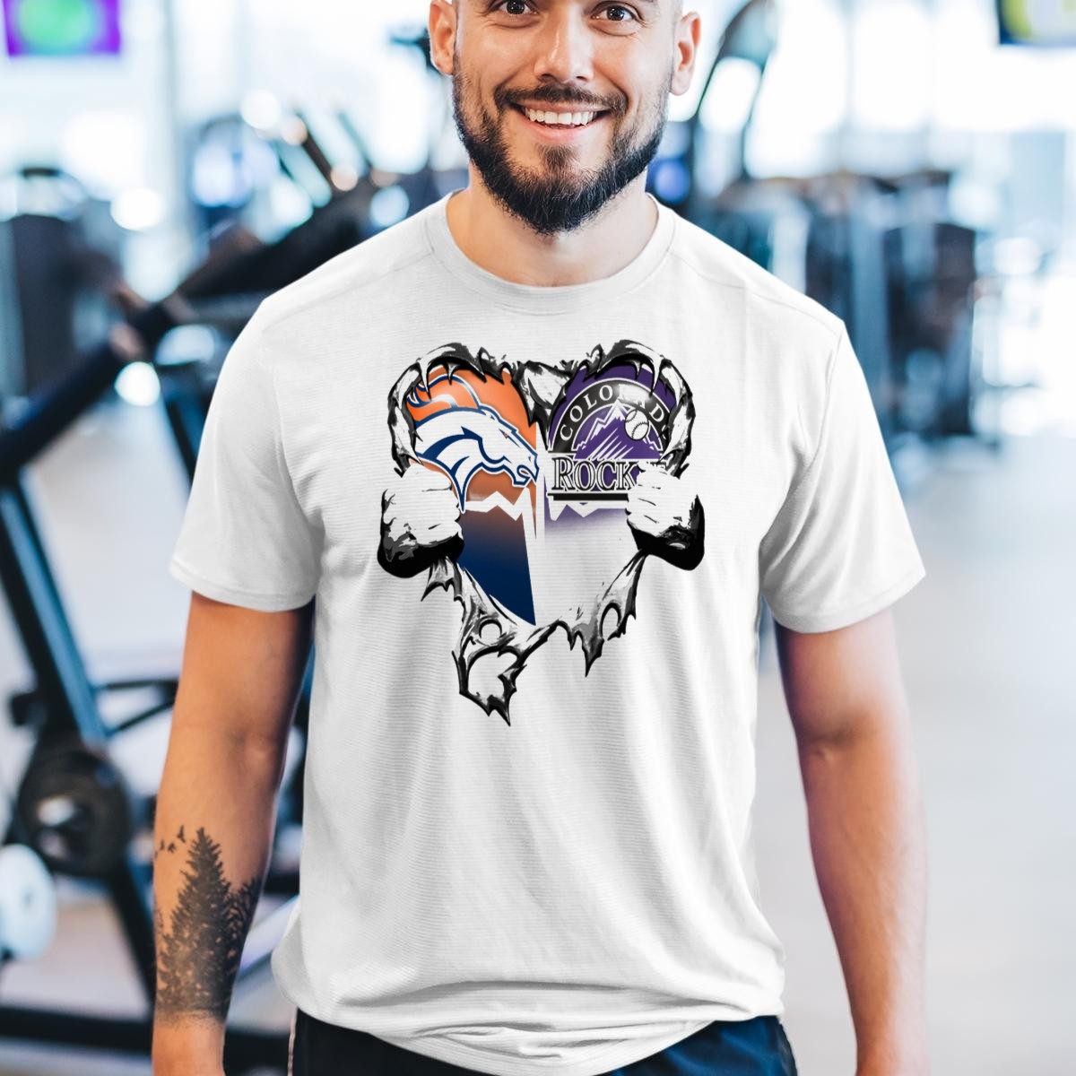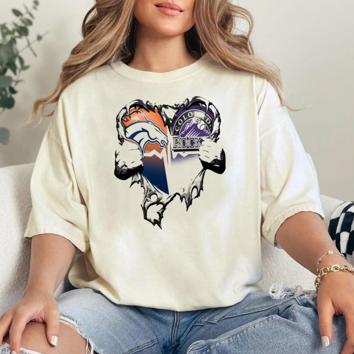 Show your love for both the Denver Broncos and the Colorado Rockies with our fan-made Split Heart T-Shirt! Perfect for loyal supporters and sports enthusiasts alike, this classic tee is ideal for casual outings, themed events, or simply cheering from the comfort of your home. Crafted with care and printed in the USA, it’s a unique addition to any fan’s wardrobe that celebrates the spirit of Colorado.