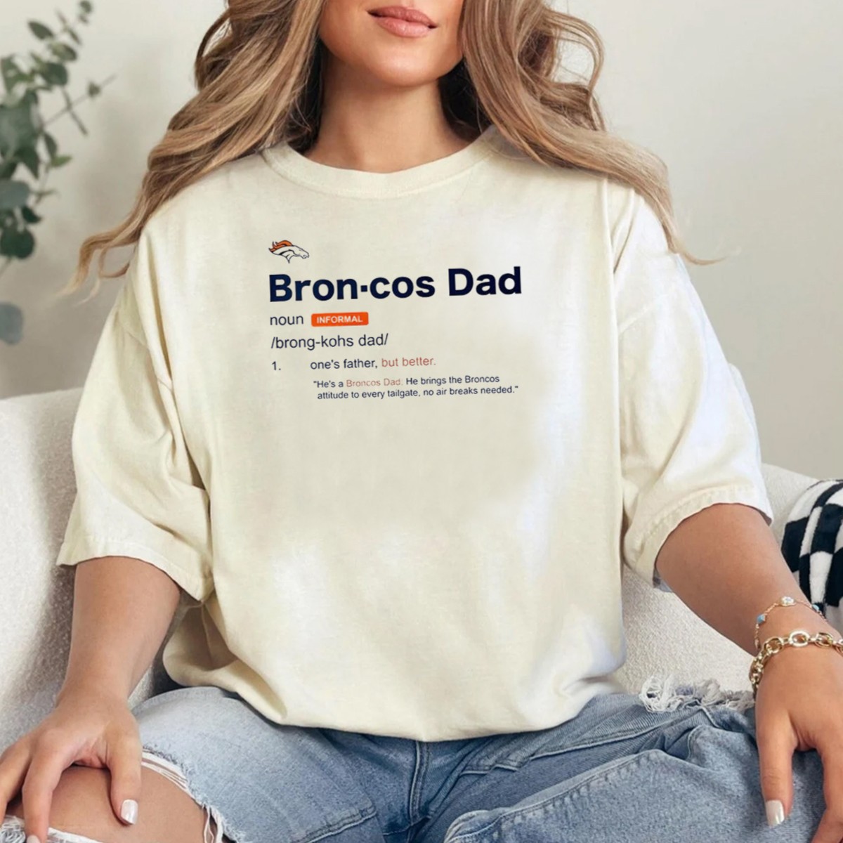 Show your unwavering support for the Denver Broncos while celebrating fatherhood with our exclusive “Dad Noun Definition Better Father Tailgate Attitude” T-shirt. This fan-made design is perfect for dedicated dads who love to tailgate, attend games, or simply enjoy casual outings. Crafted for comfort and style, this shirt is a must-have for any Broncos fan looking to showcase their pride and personality.