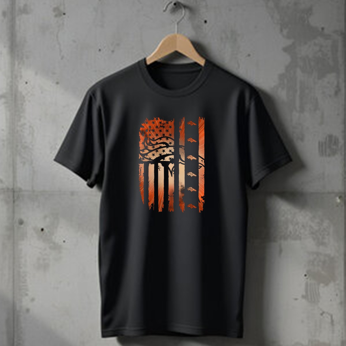 Show your team spirit with our Denver Broncos Distressed American Flag Stars And Stripes T-Shirt! This unique graphic tee is perfect for fans who want to combine their love for football with a touch of patriotism. Ideal for casual outings, themed events, or everyday wear, this shirt is designed for comfort and style, making it a must-have in any Broncos fan’s wardrobe. Crafted with care in the USA, it features a fan-made design that stands out in any crowd.
