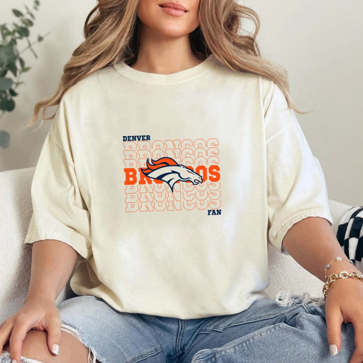 Denver Broncos Fan Bold Logo Overlapping Text T-Shirt