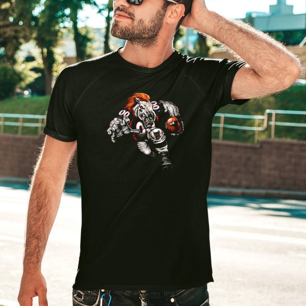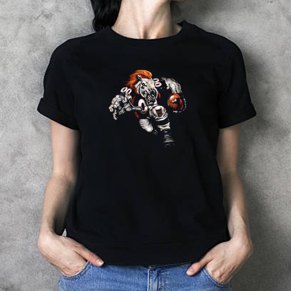 Show your unwavering support for the Denver Broncos with this fan-made graphic T-shirt, perfect for die-hard football enthusiasts. Designed for comfort and style, this shirt features a striking print of a spirited horse in a Broncos jersey, making it an ideal choice for casual outings, game days, and themed events. Whether you’re cheering from the stands or lounging at home, this classic fit T-shirt will keep you feeling great while showcasing your team pride.