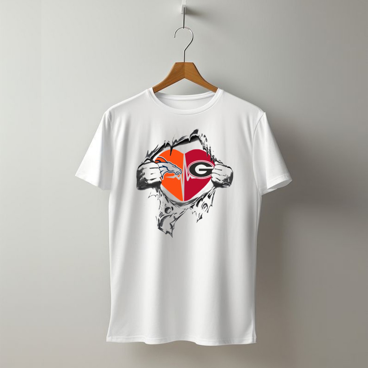 Denver Broncos Georgia Bulldogs Heart Logos T-Shirt