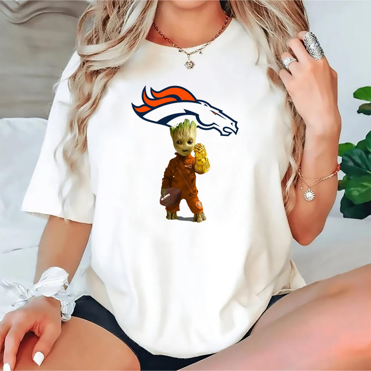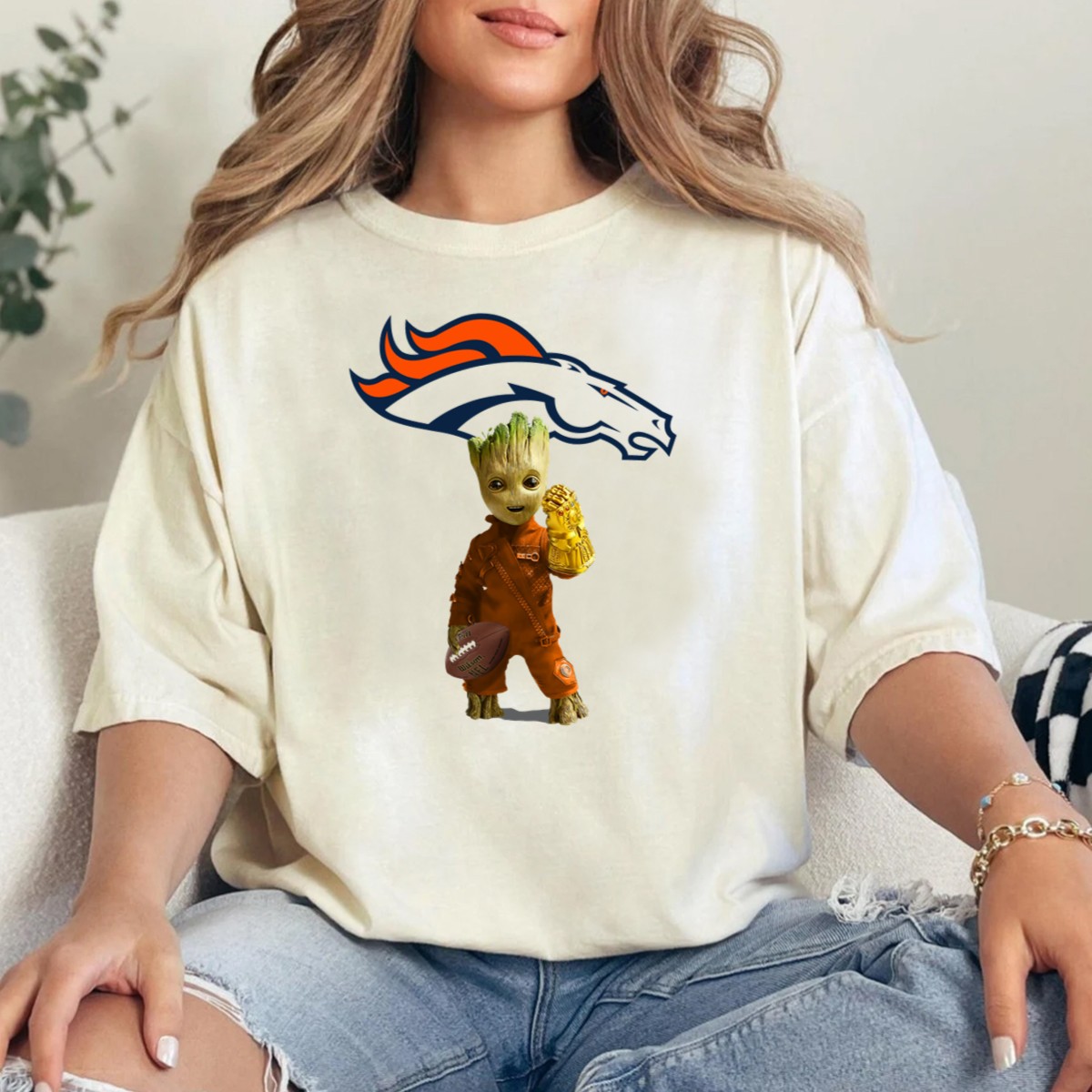 Denver Broncos Groot Infinity Gauntlet Football Fan T-Shirt