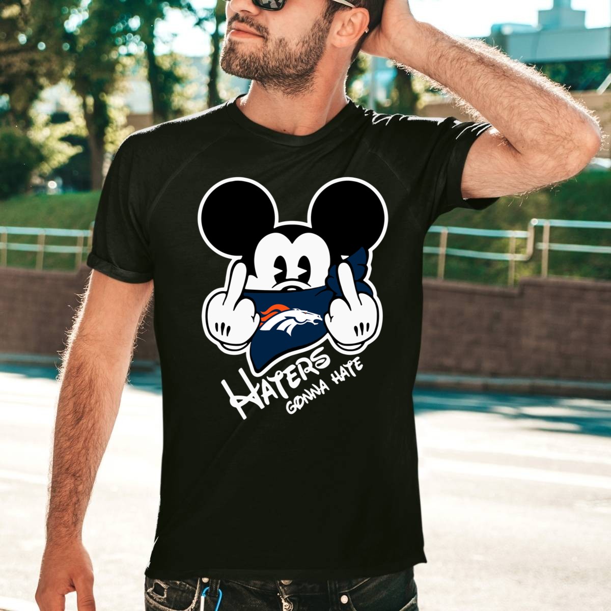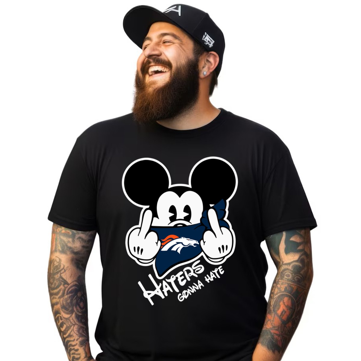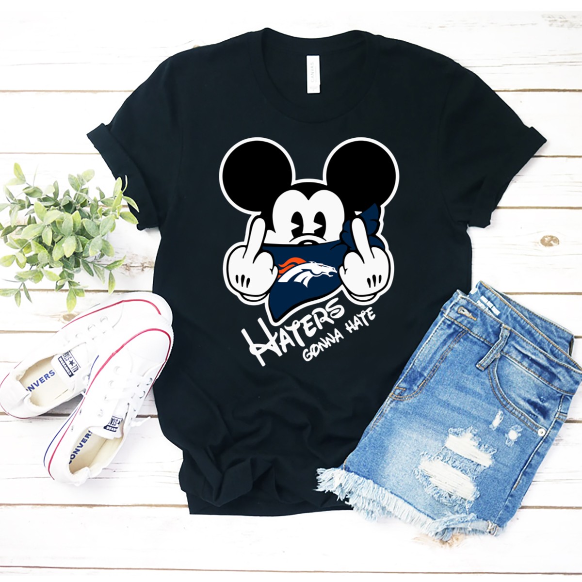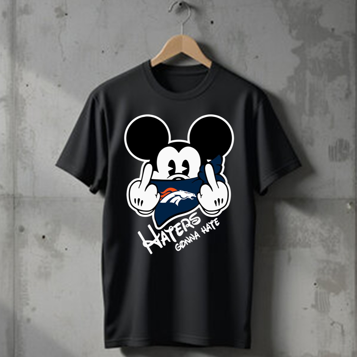 Show off your love for the Denver Broncos with a playful twist on a classic theme! The Denver Broncos Haters Gonna Hate Mickey Mouse T-Shirt is perfect for fans who want to combine their passion for football with a touch of fun. Ideal for casual outings, themed events, or just lounging around, this shirt is sure to turn heads and spark conversations. With a fan-made design proudly printed in the USA, it’s a unique addition to any Broncos fan’s wardrobe.