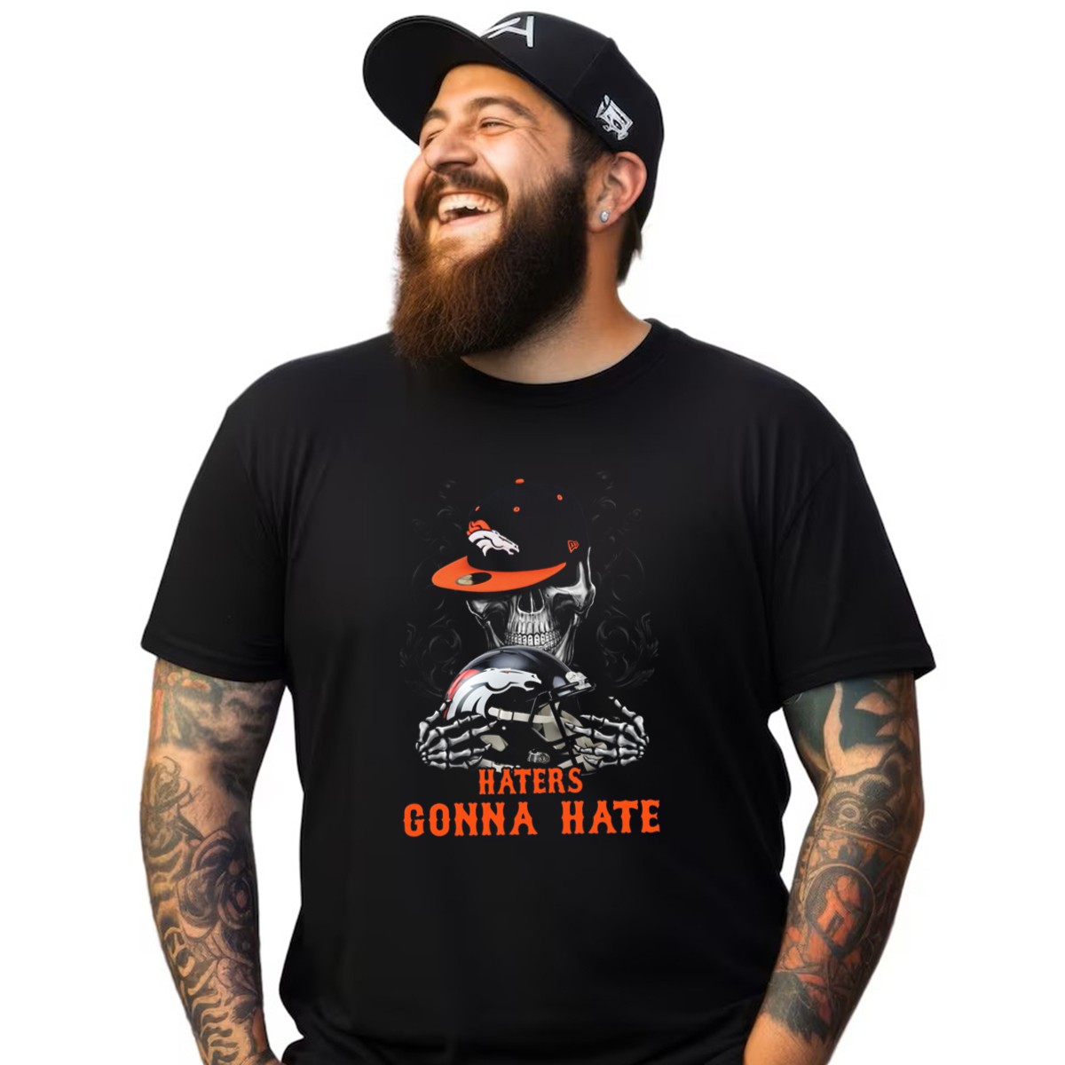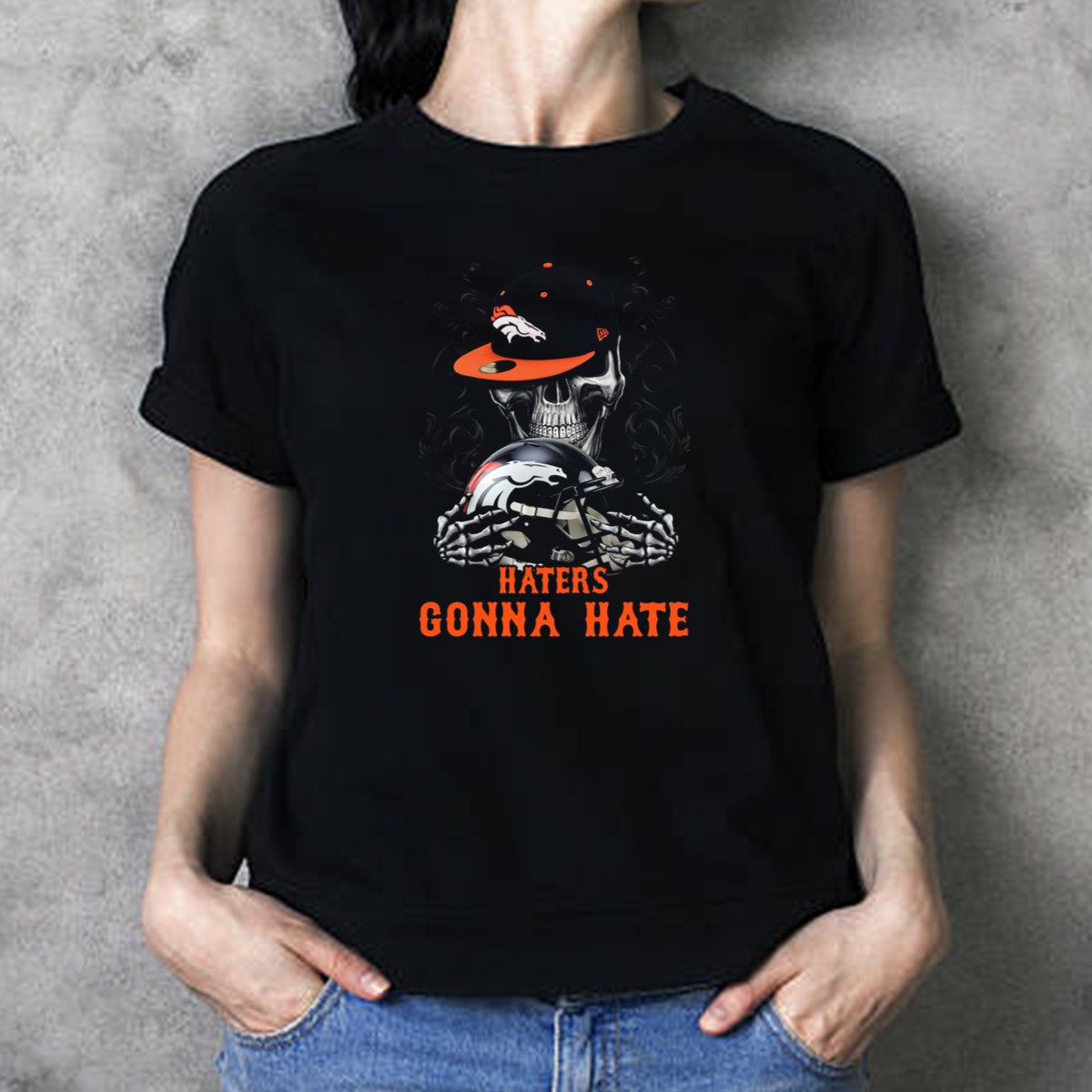 Denver Broncos Haters Gonna Hate Skull With Helmets And Cap T-Shirt