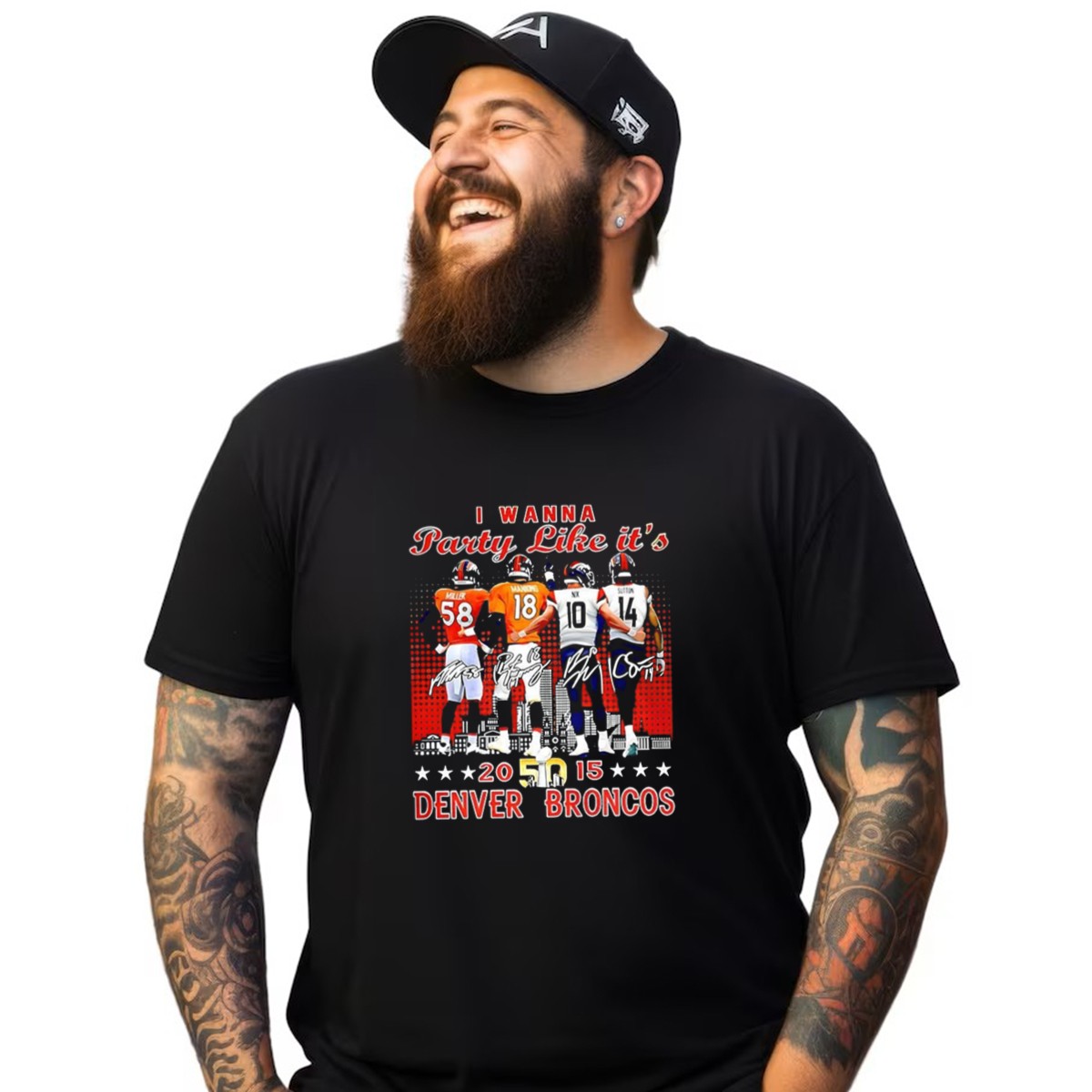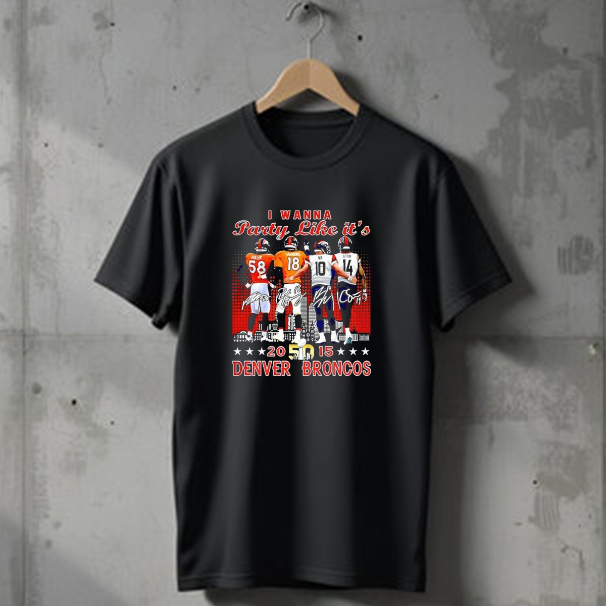 Show your true colors and celebrate the spirit of the Denver Broncos with our fan-made “I Wanna Party Like It’s Super Bowl 50” T-shirt! Perfect for die-hard fans, this shirt features the iconic signatures of Miller and Manning, making it an ideal choice for game days, casual outings, or themed events. Crafted for comfort and style, this classic fit tee is a must-have for anyone looking to honor their favorite team while enjoying the soft, breathable fabric.