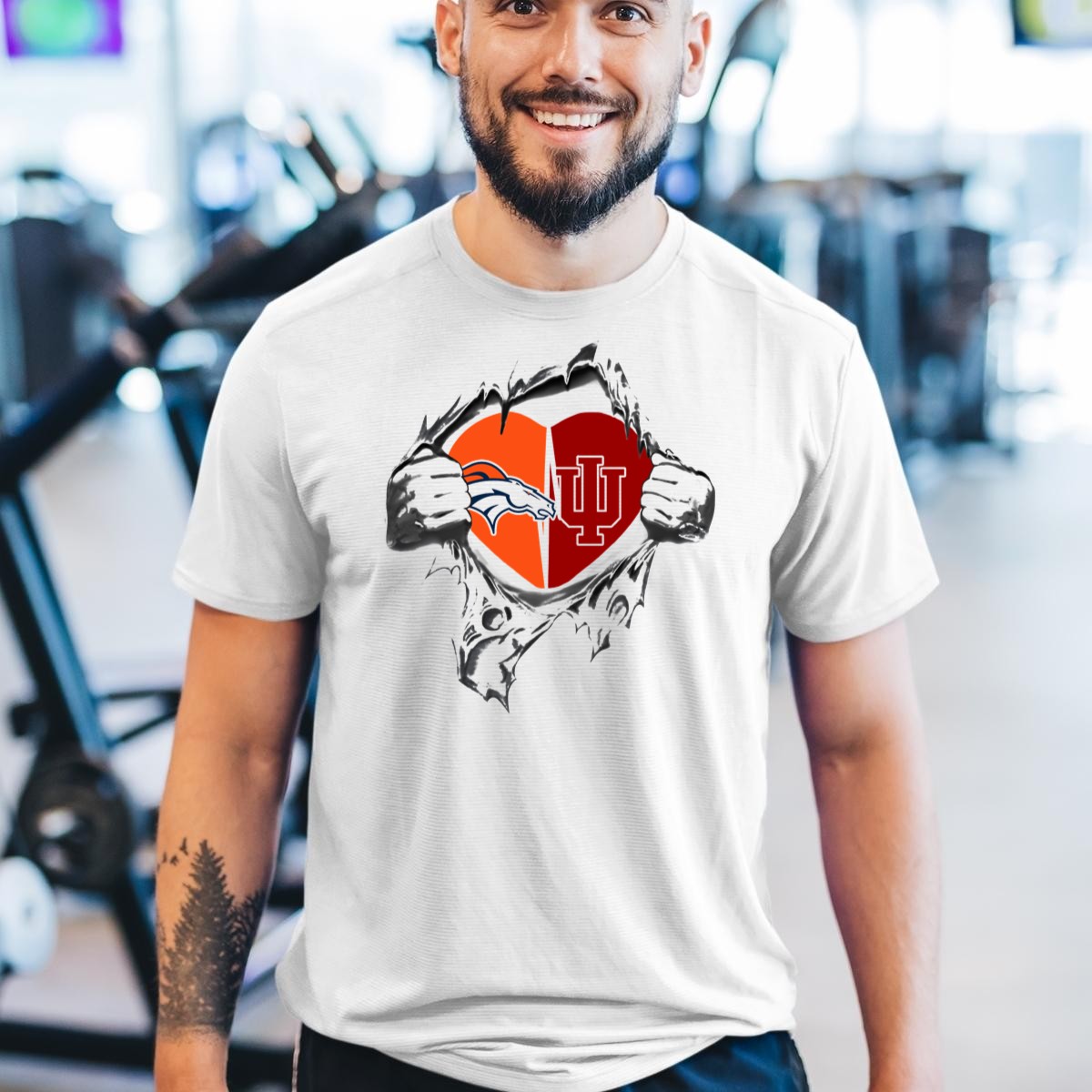 Show your love for both the Denver Broncos and Indiana Hoosiers with this unique fan-made graphic T-shirt! Perfect for sports enthusiasts and casual wearers alike, this shirt features a heart symbol adorned with the iconic logos of both teams, making it an ideal choice for game days, themed events, or everyday outings. Crafted for comfort and style, it’s a must-have addition to any fan’s wardrobe.