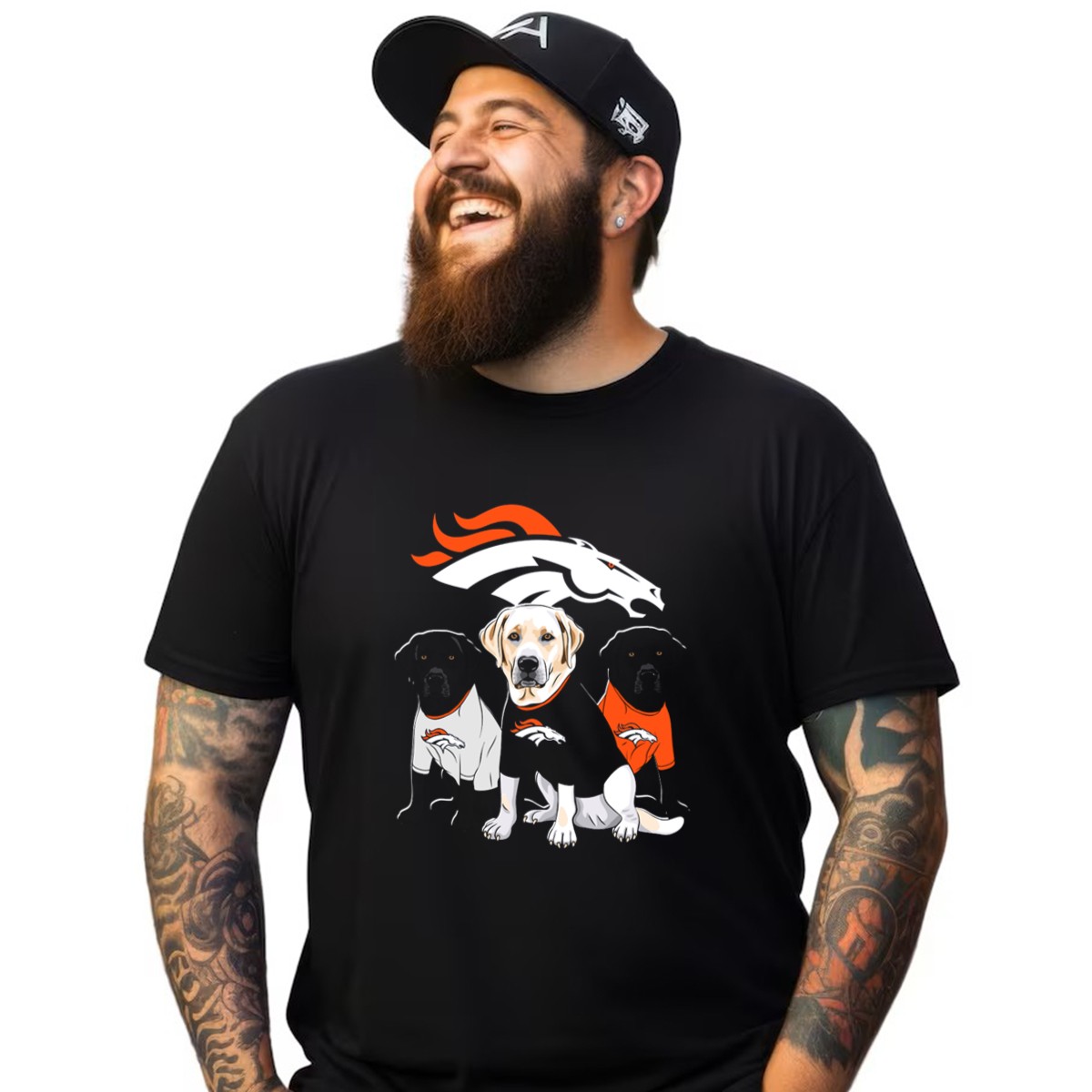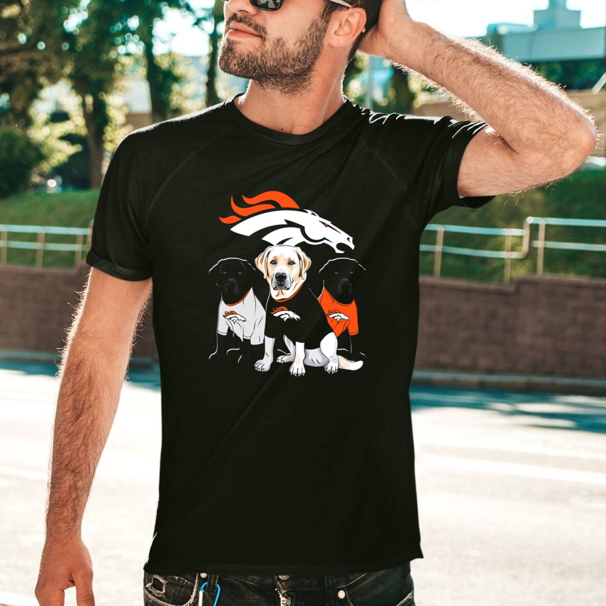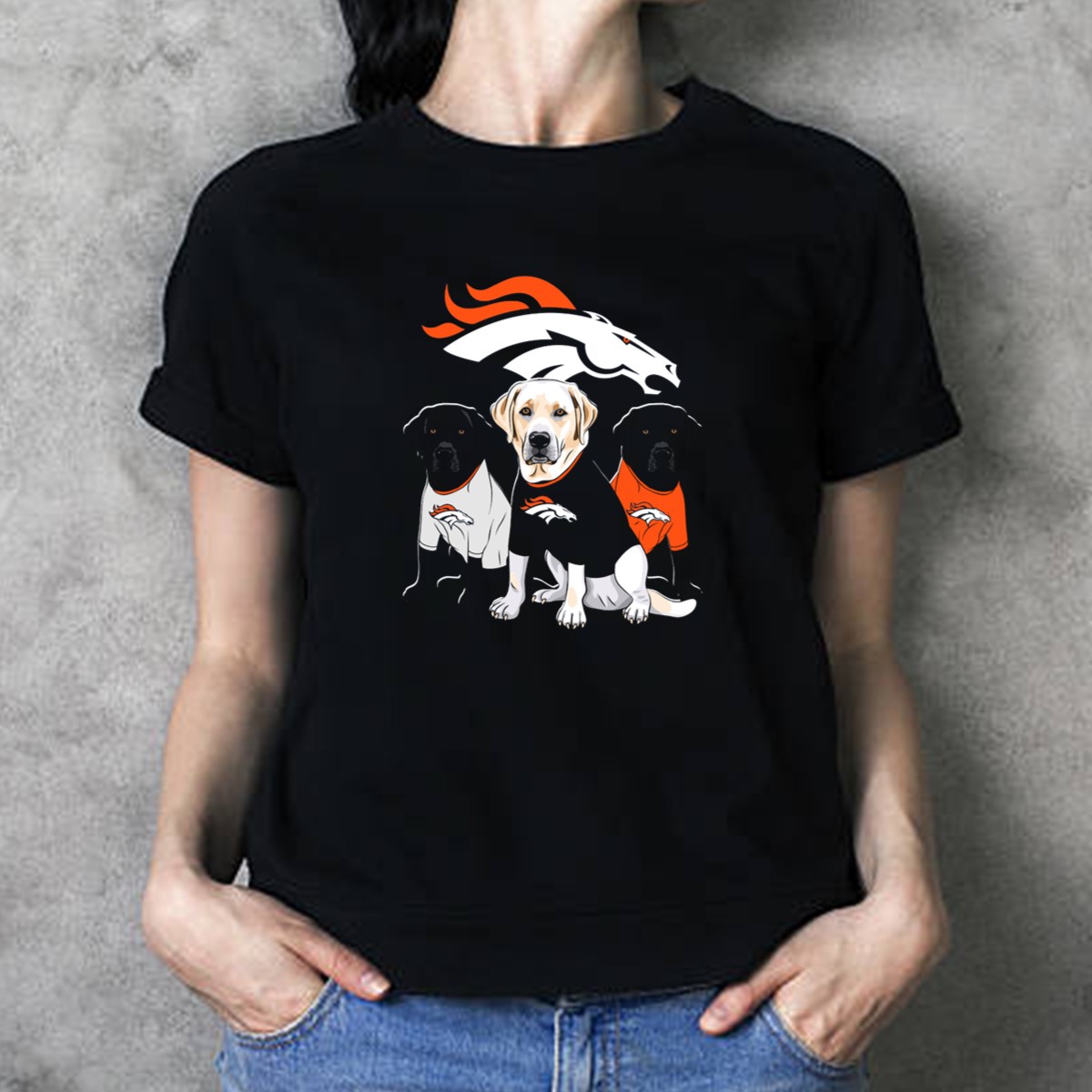 Show your love for the Denver Broncos and your furry friend with this unique Labrador Retriever T-shirt! Perfect for dog lovers and sports fans alike, this fan-made design is ideal for casual outings, themed events, or just lounging at home. Made with care in the USA, this shirt combines comfort and style, making it a must-have addition to your wardrobe.