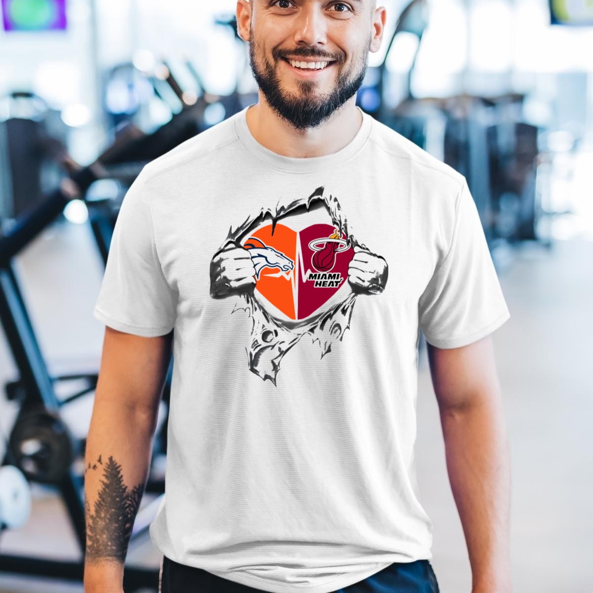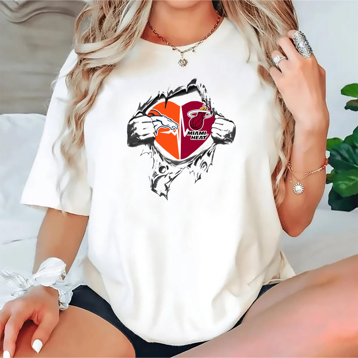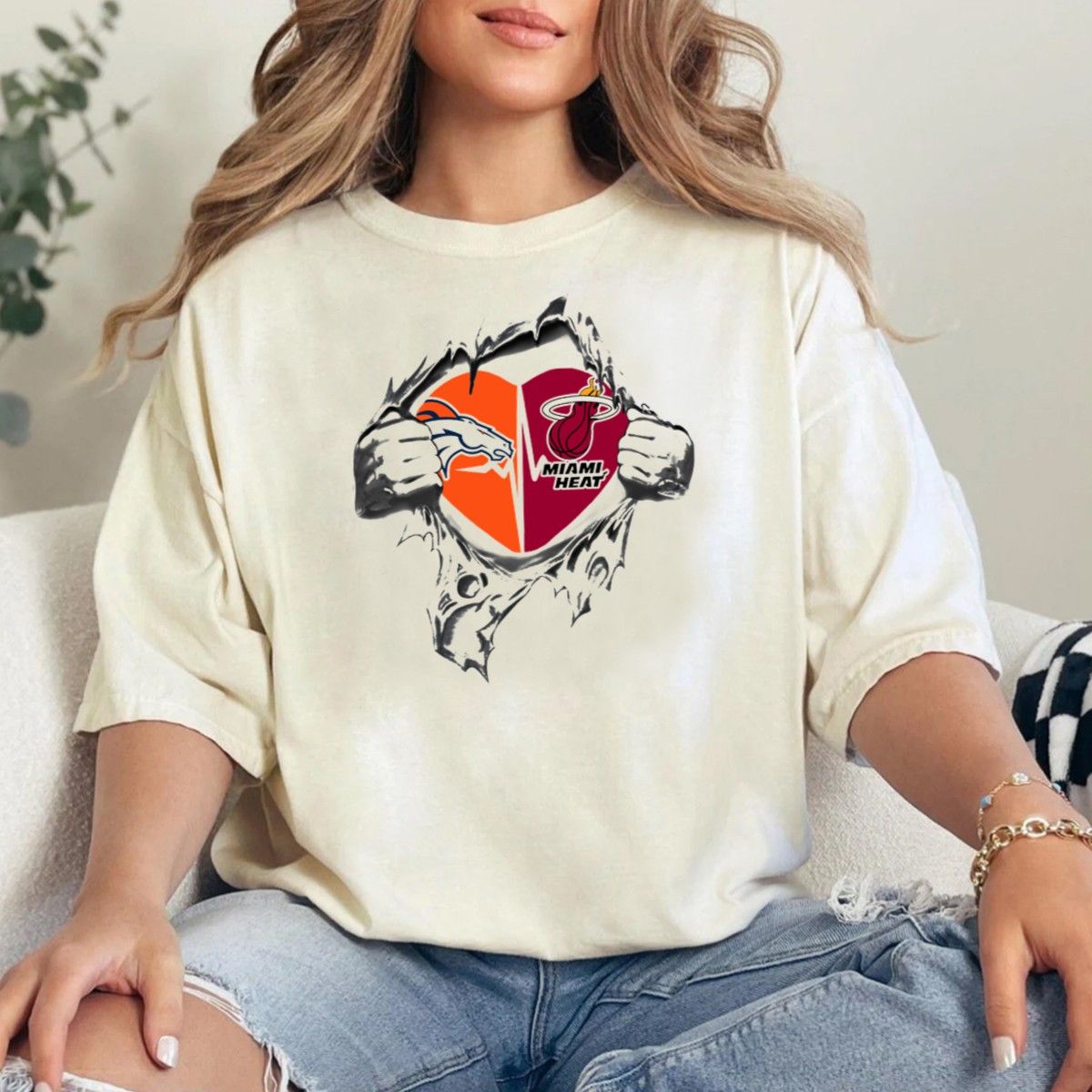 Show your love for both the Denver Broncos and Miami Heat with this unique fan-made T-shirt that celebrates the unity of sports! Perfect for die-hard fans, this shirt is ideal for casual outings, themed events, or just lounging around while cheering for your favorite teams. Crafted with care and printed in the USA, this T-shirt combines comfort and style to make a statement wherever you go.
