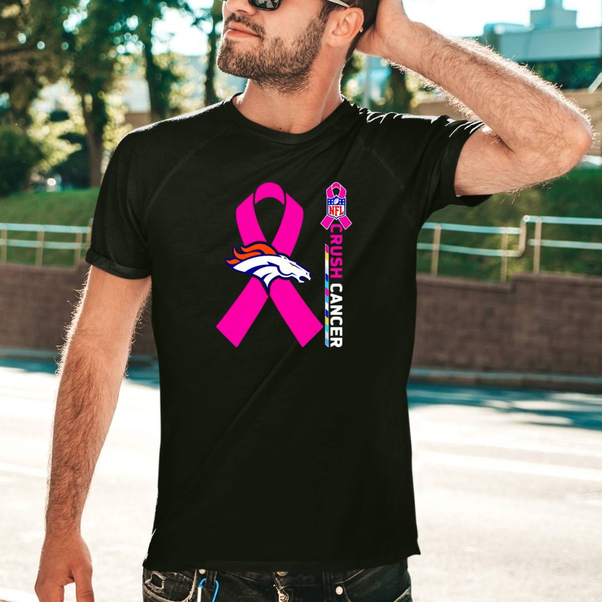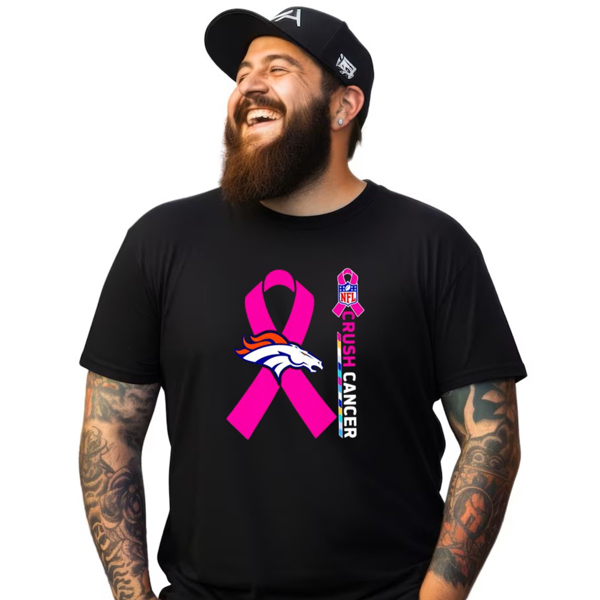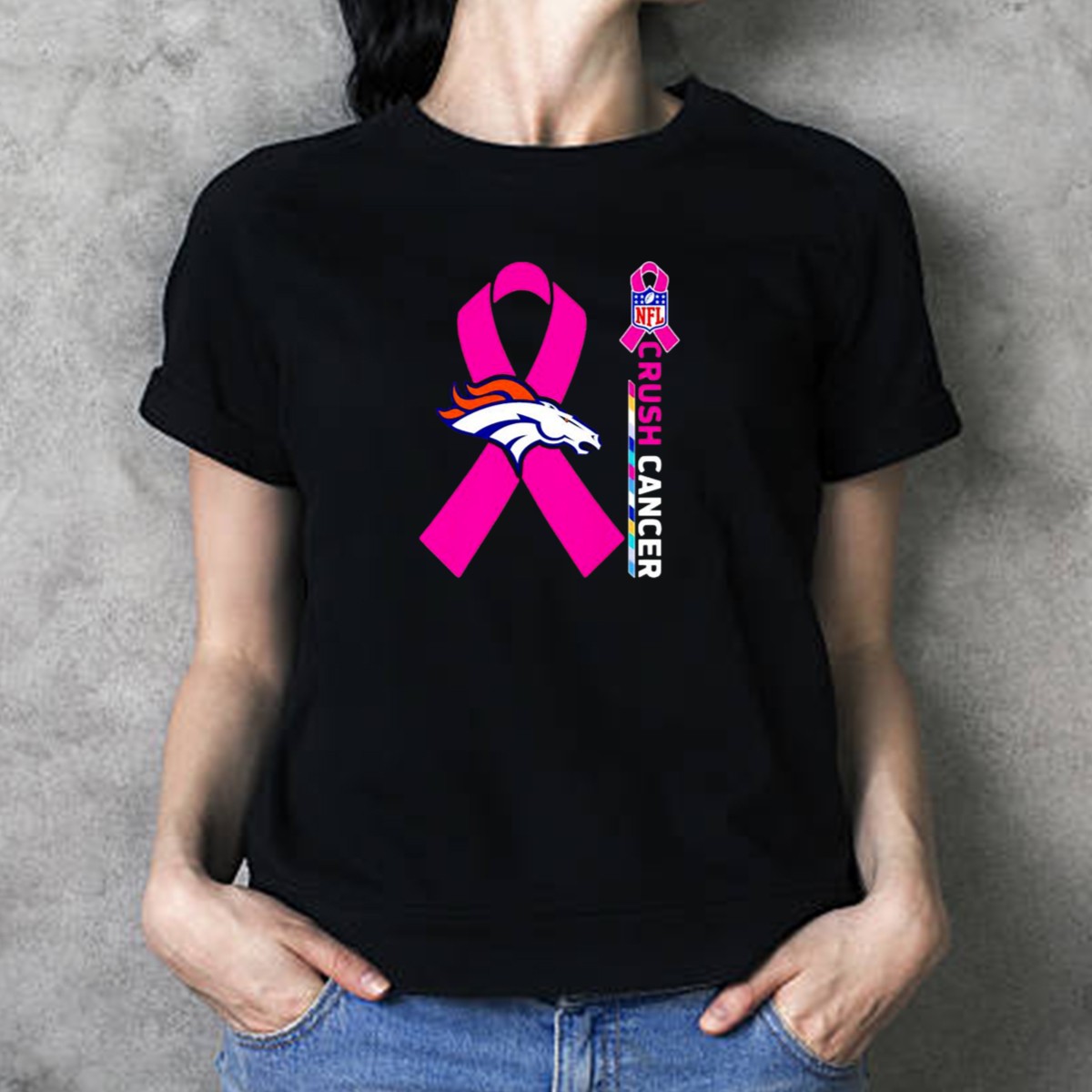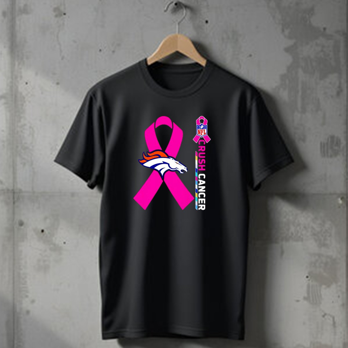 Show your support for breast cancer awareness while representing your favorite team with the Denver Broncos NFL Pink Ribbon Crush Cancer Campaign T-Shirt. This fan-made design is perfect for die-hard Broncos fans and anyone looking to make a statement in the fight against cancer. Ideal for casual outings, themed events, or daily wear, this shirt combines comfort and style, making it a must-have addition to your wardrobe.