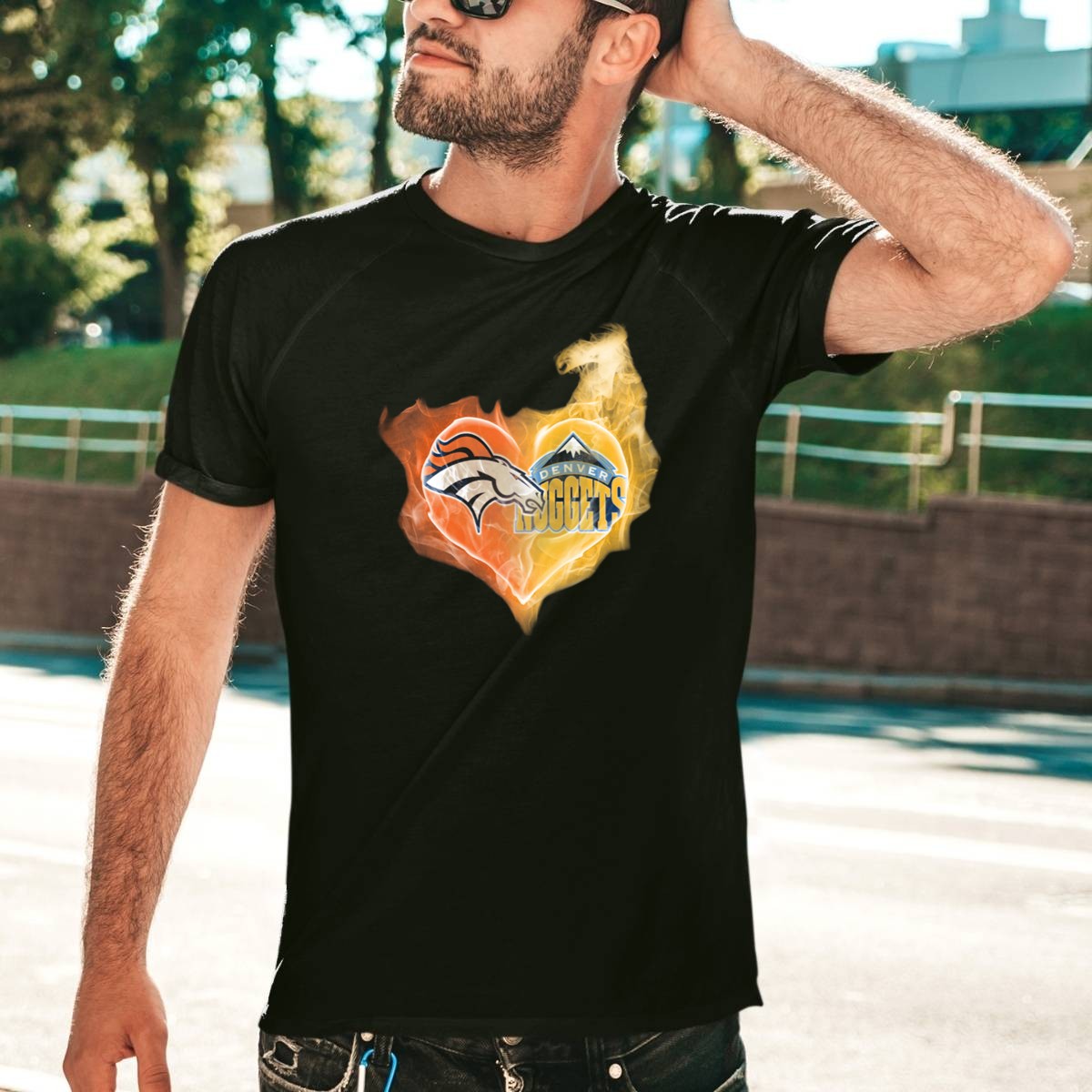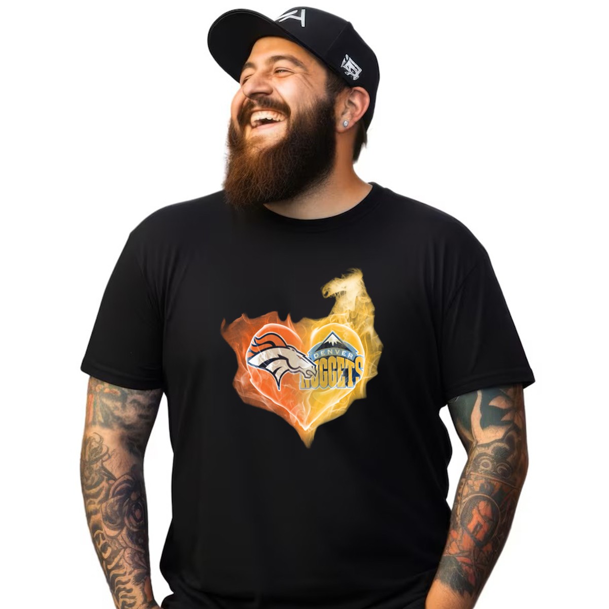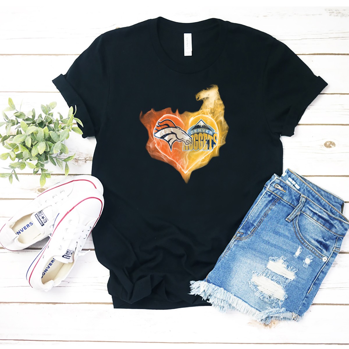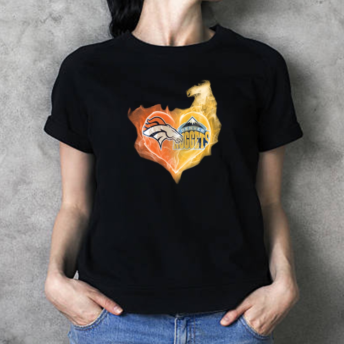 Denver Broncos Nuggets Heart Flame Fusion T-Shirt