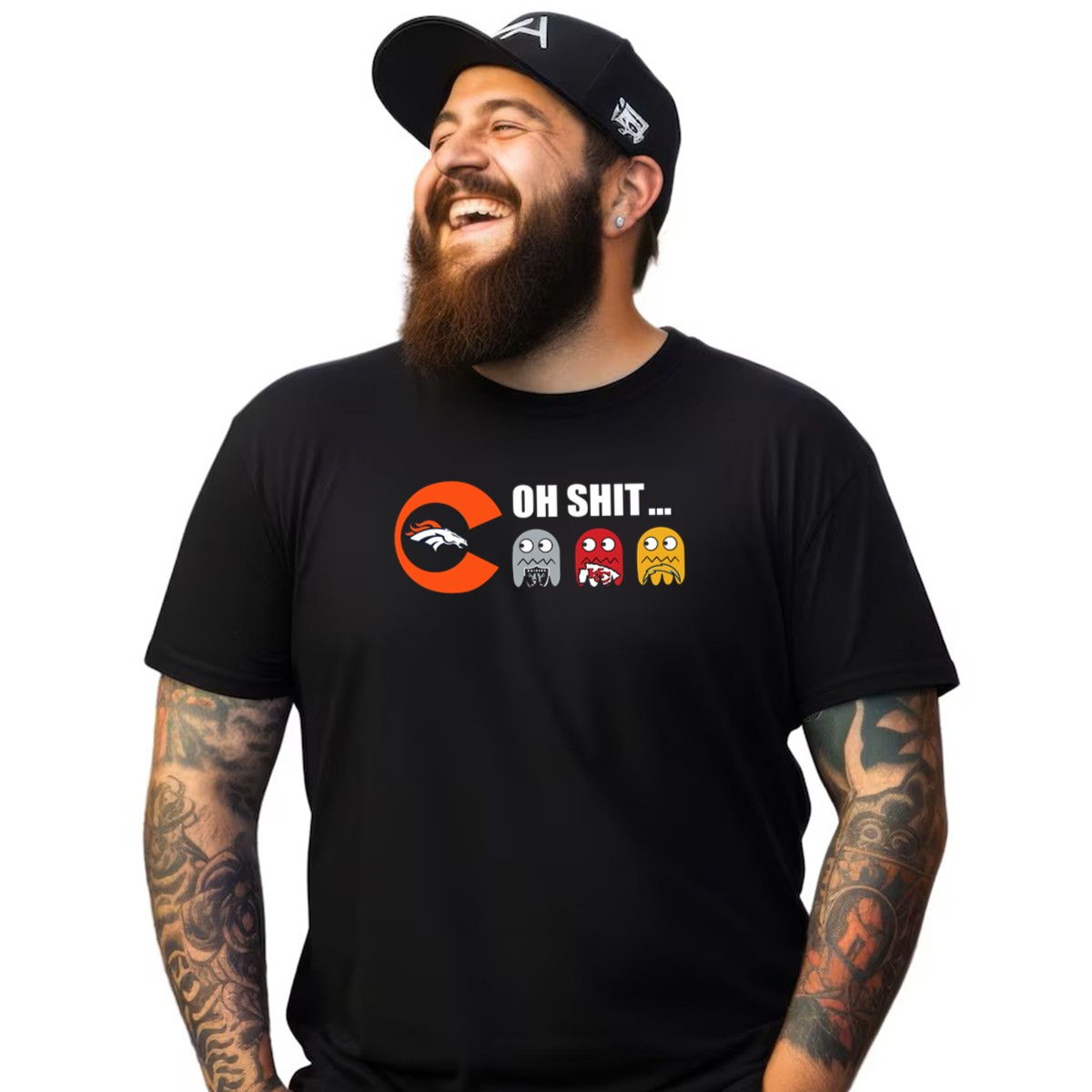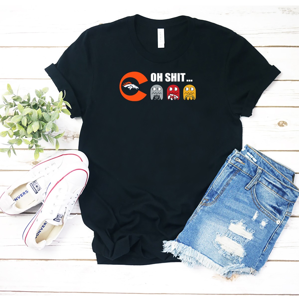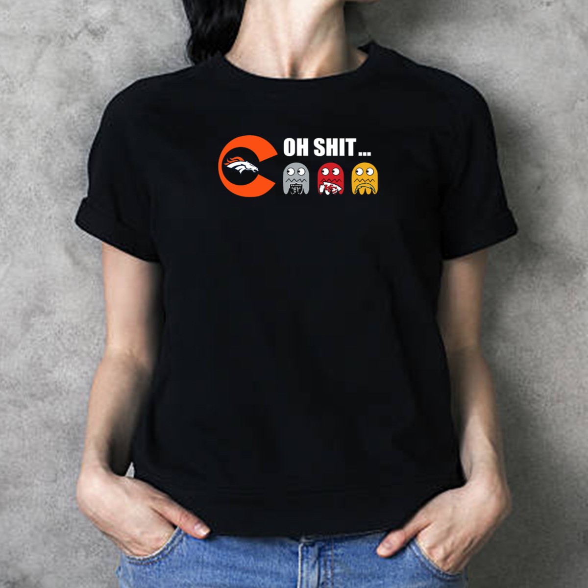 Show off your team spirit and sense of humor with the Denver Broncos Oh Shit Pac Man Ghosts T-Shirt! Perfect for die-hard fans and casual wearers alike, this unique shirt is ideal for game days, themed events, or just lounging around. With its fan-made design proudly printed in the USA, this T-shirt combines comfort and style, making it a must-have for any Broncos enthusiast looking to stand out.