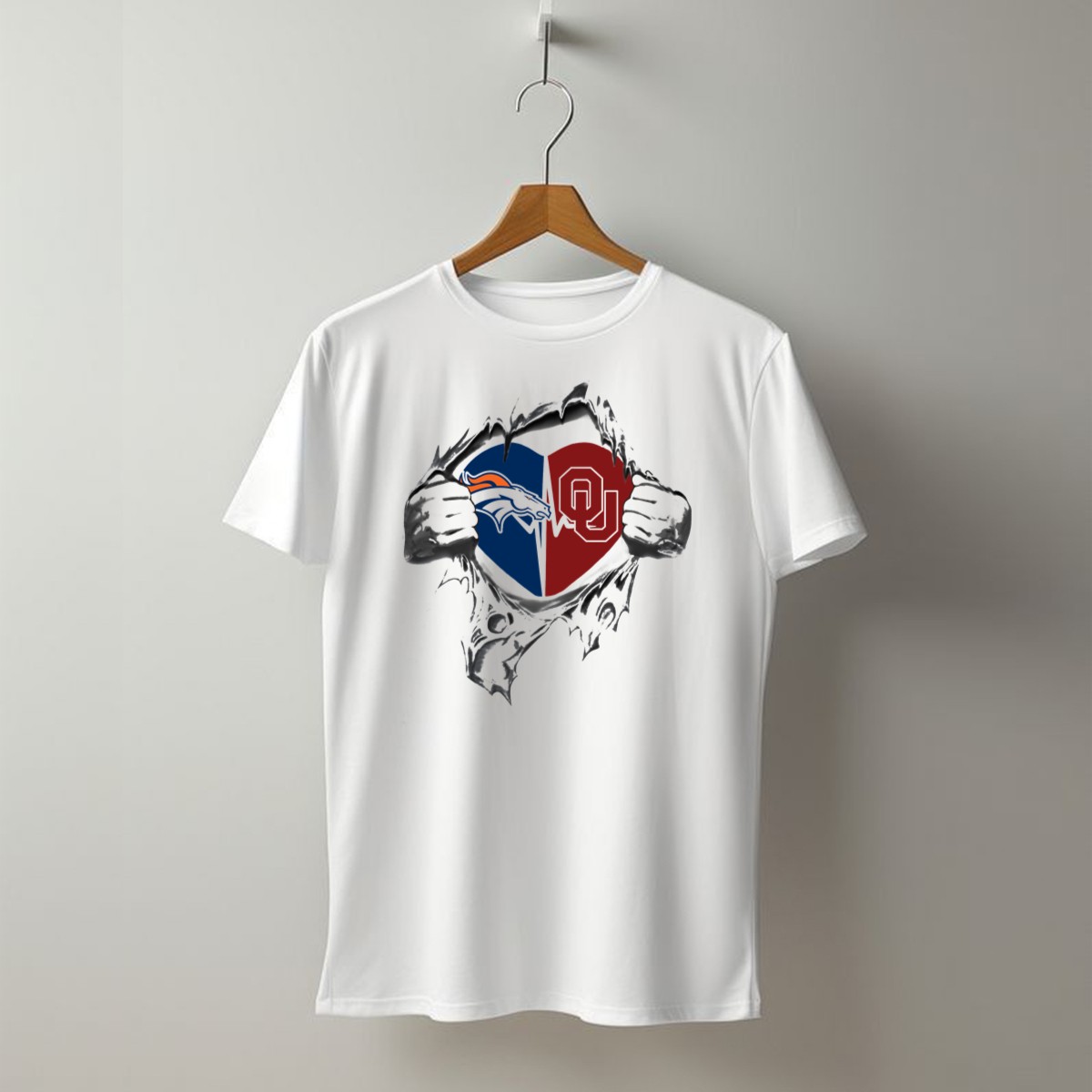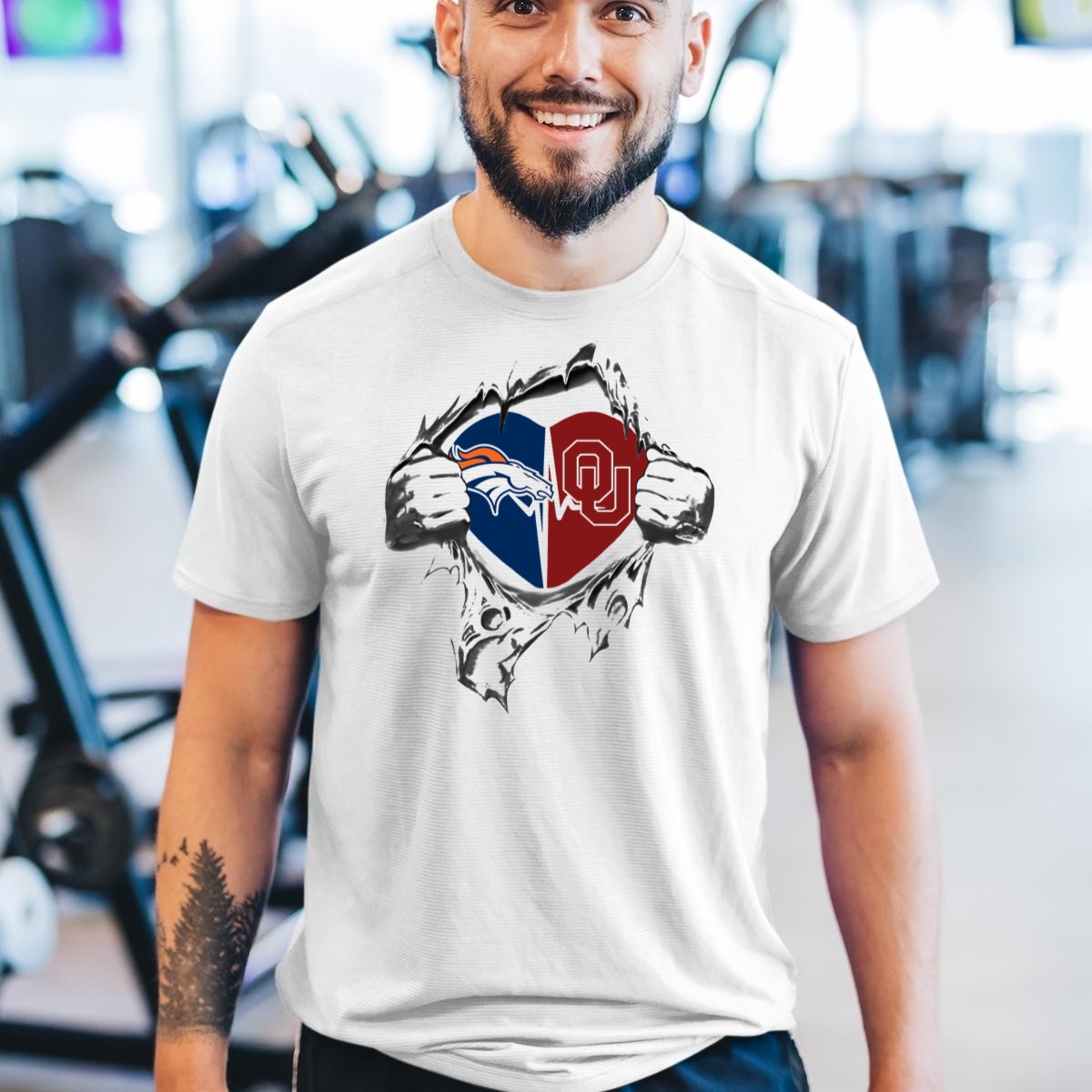 Denver Broncos Oklahoma Sooners Heart Design 352 T-Shirt