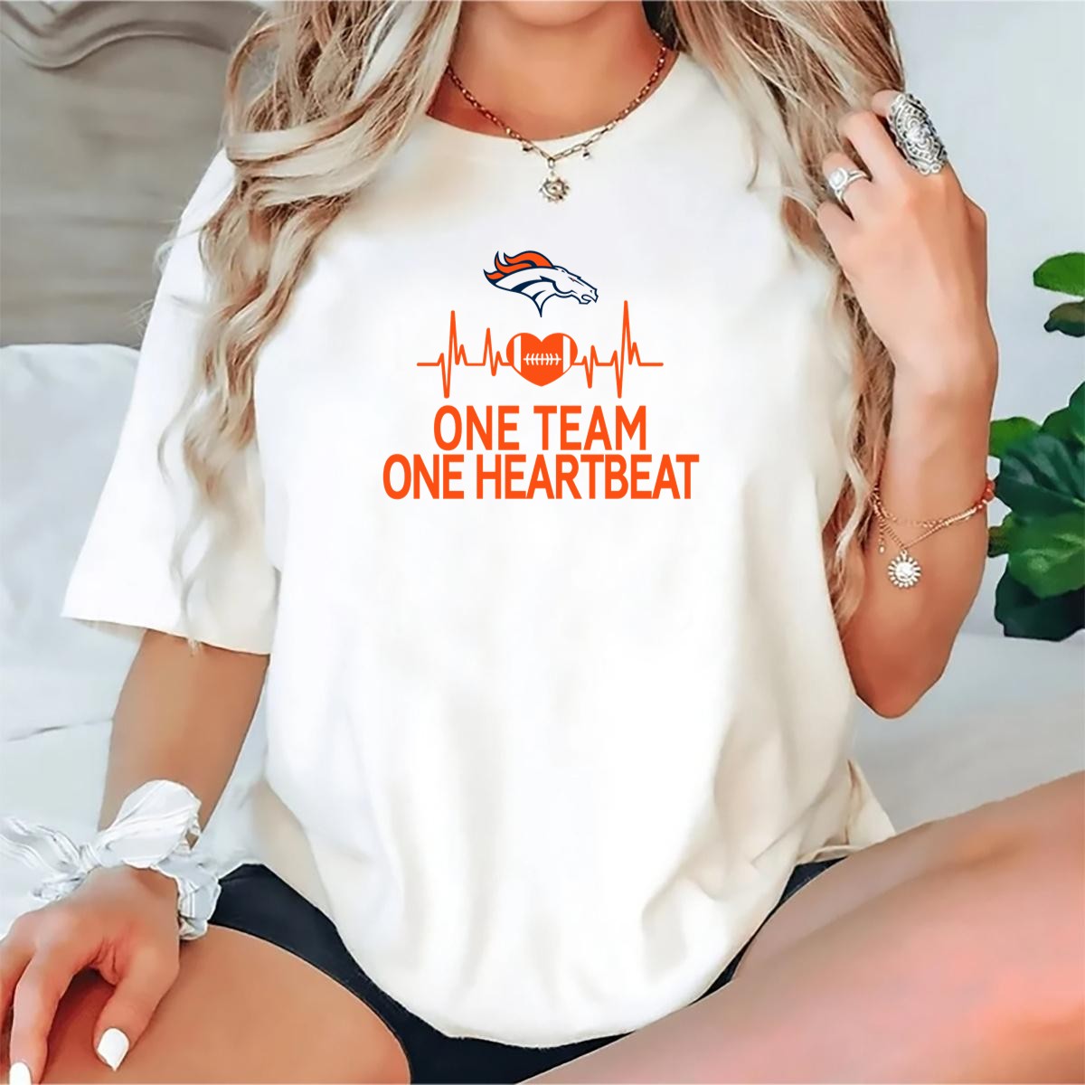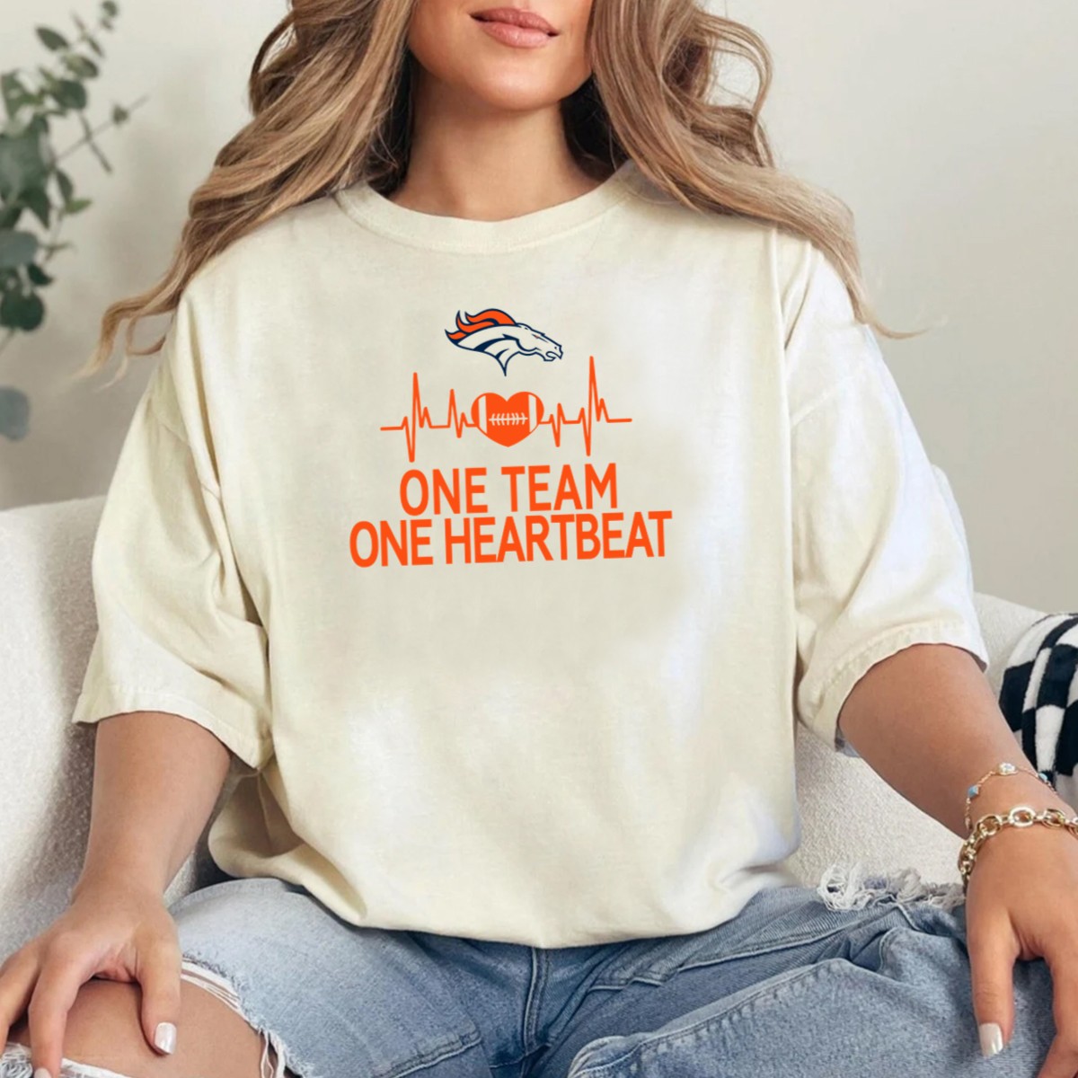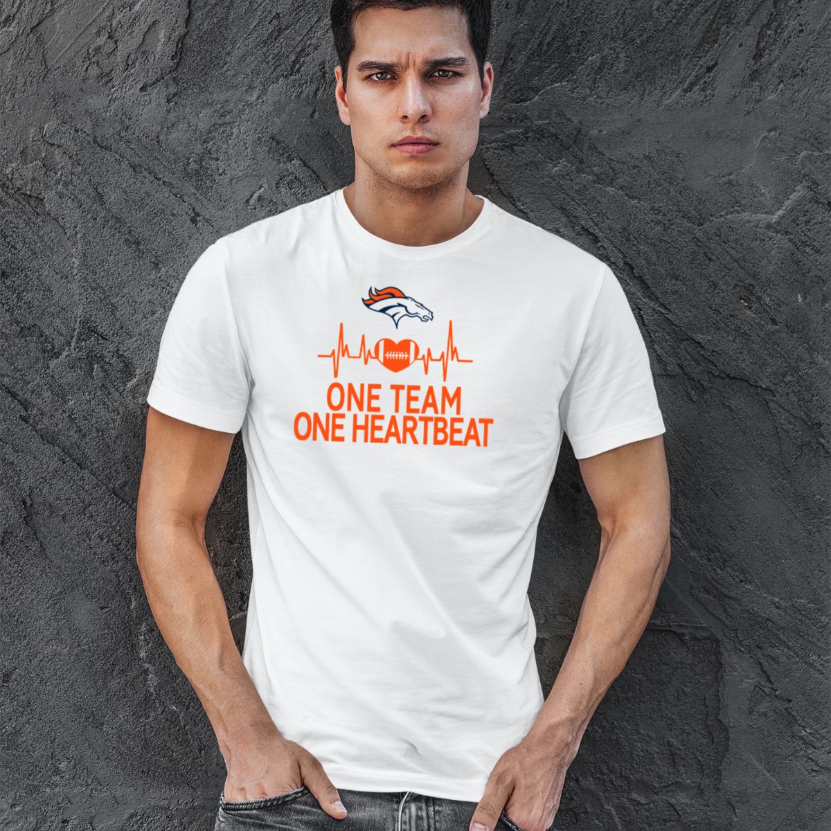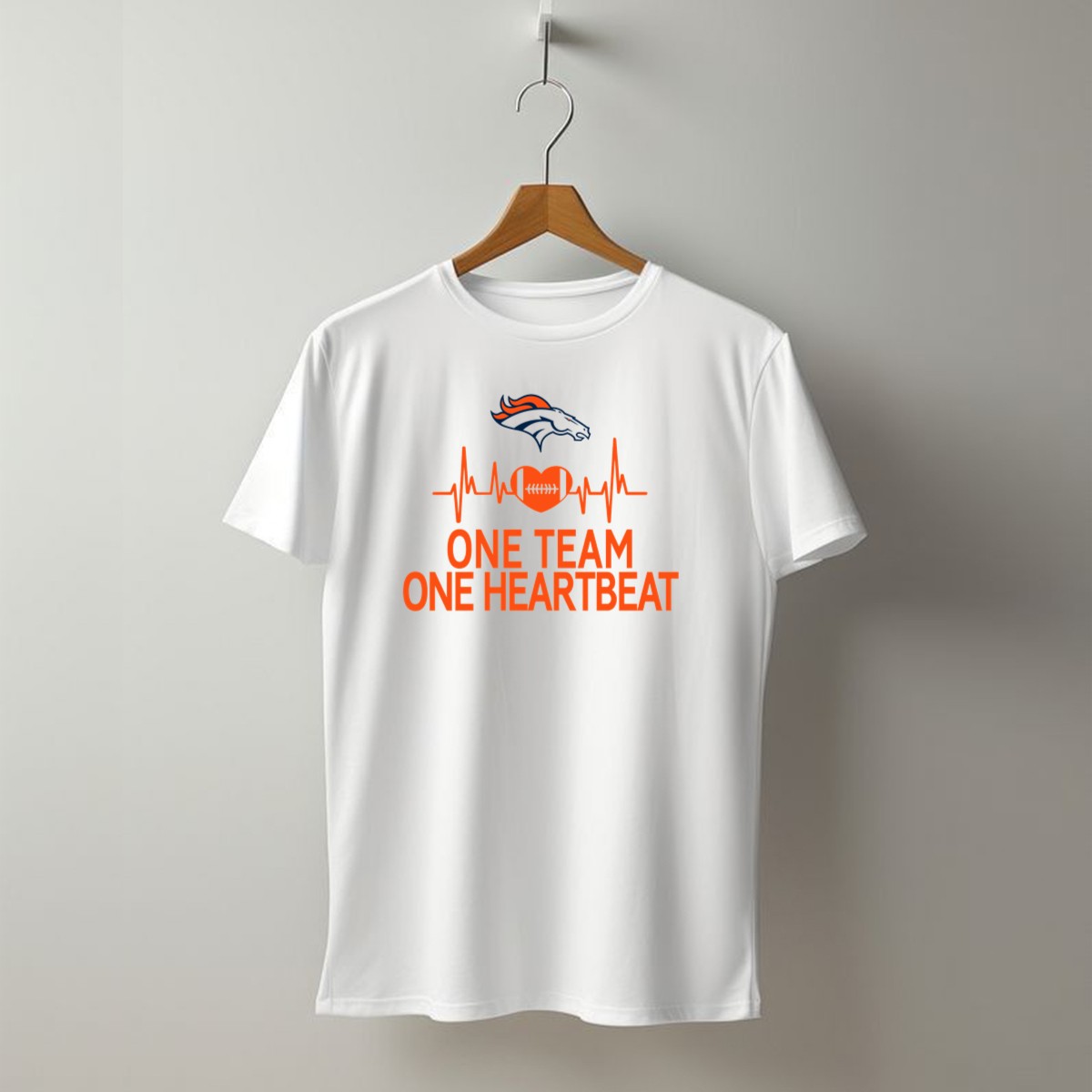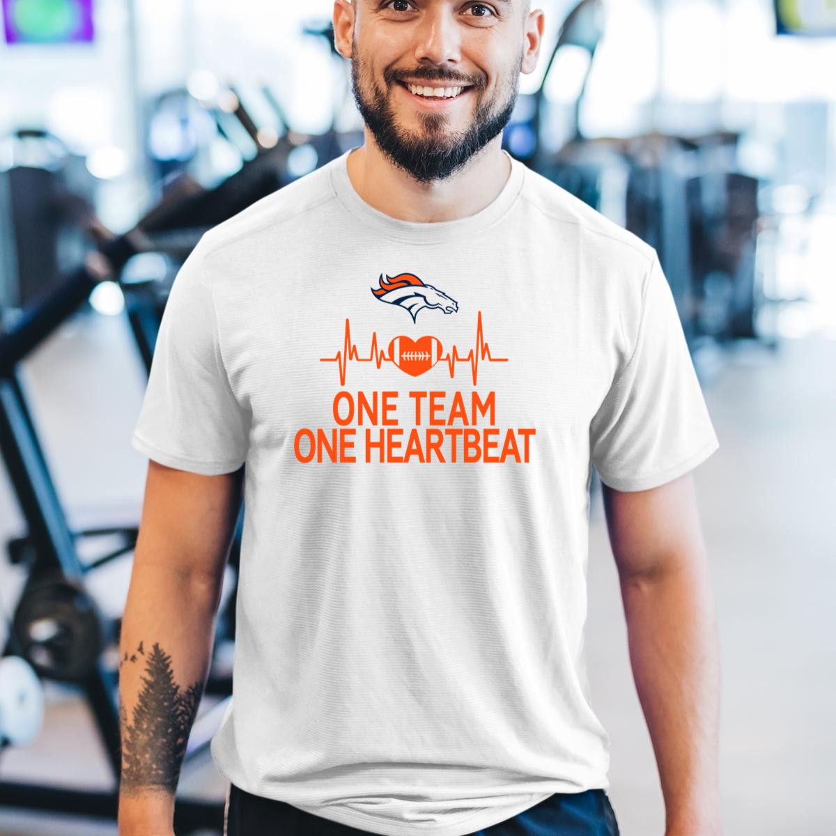 Show your unwavering support for the Denver Broncos with our “One Team One Heartbeat” T-shirt. Designed for true fans, this shirt captures the essence of unity and passion for the game. Perfect for casual outings, themed events, or cheering from the stands, its unique fan-made design is a must-have for every Broncos enthusiast. Made with comfort in mind, it’s an ideal addition to your all-season wardrobe.