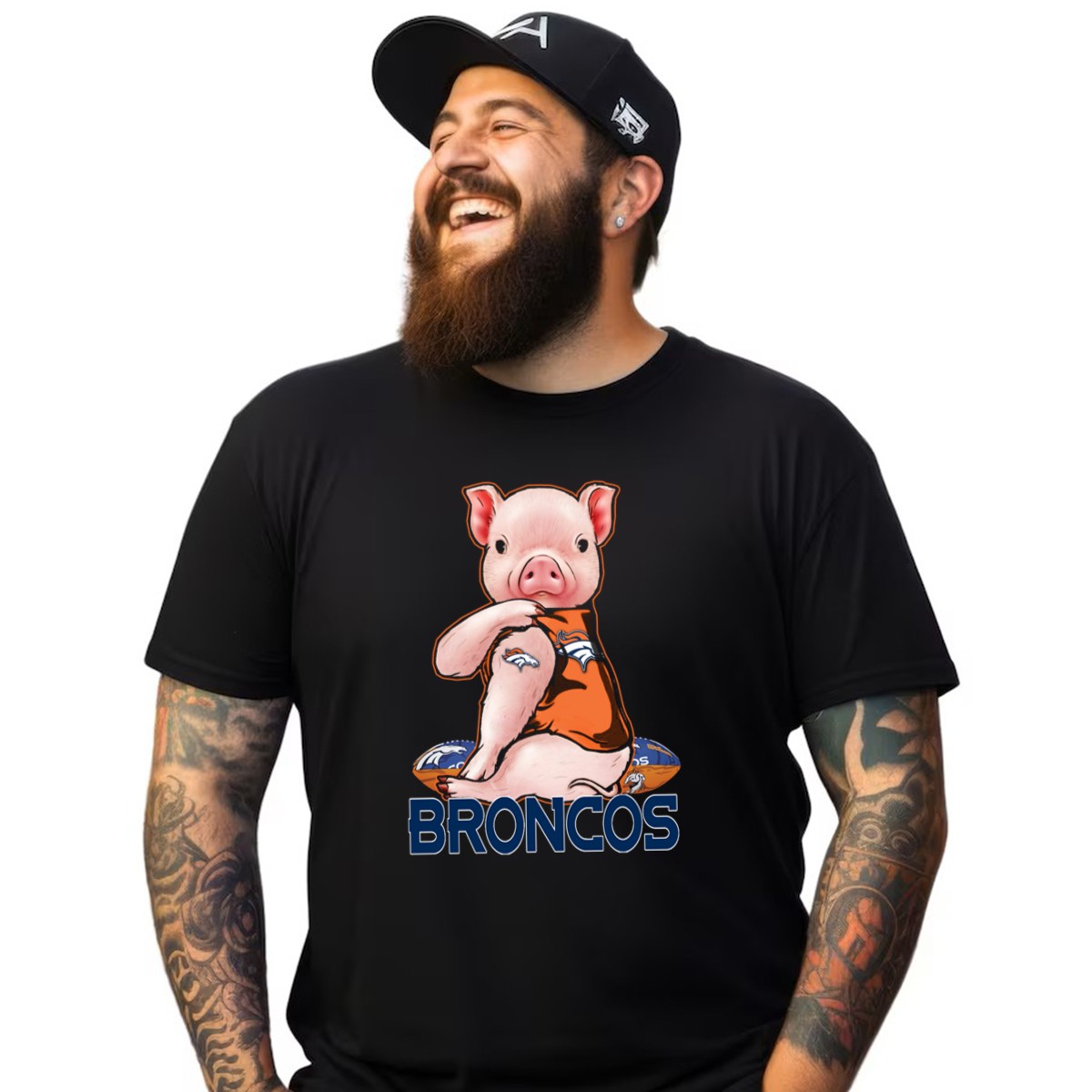 Show your love for the Denver Broncos with this uniquely designed Pig Football T-Shirt! Perfect for fans of all ages, this shirt combines comfort with a fun, playful theme, making it an ideal choice for casual outings, themed events, or just lounging at home. Proudly printed in the USA, this shirt is a great way to showcase your team spirit while enjoying a soft and breathable fit.