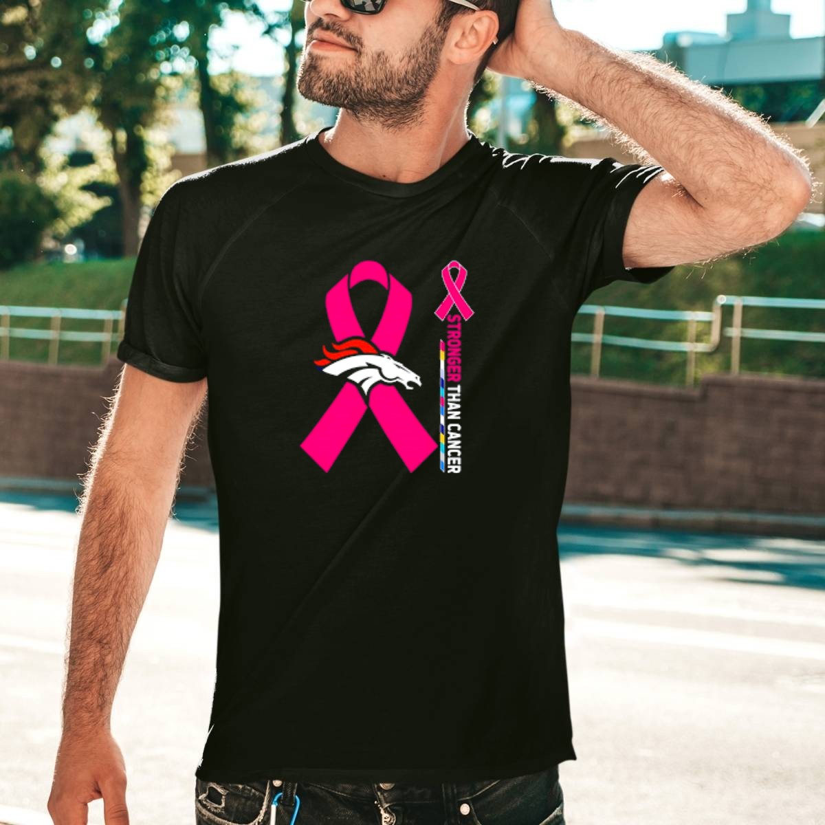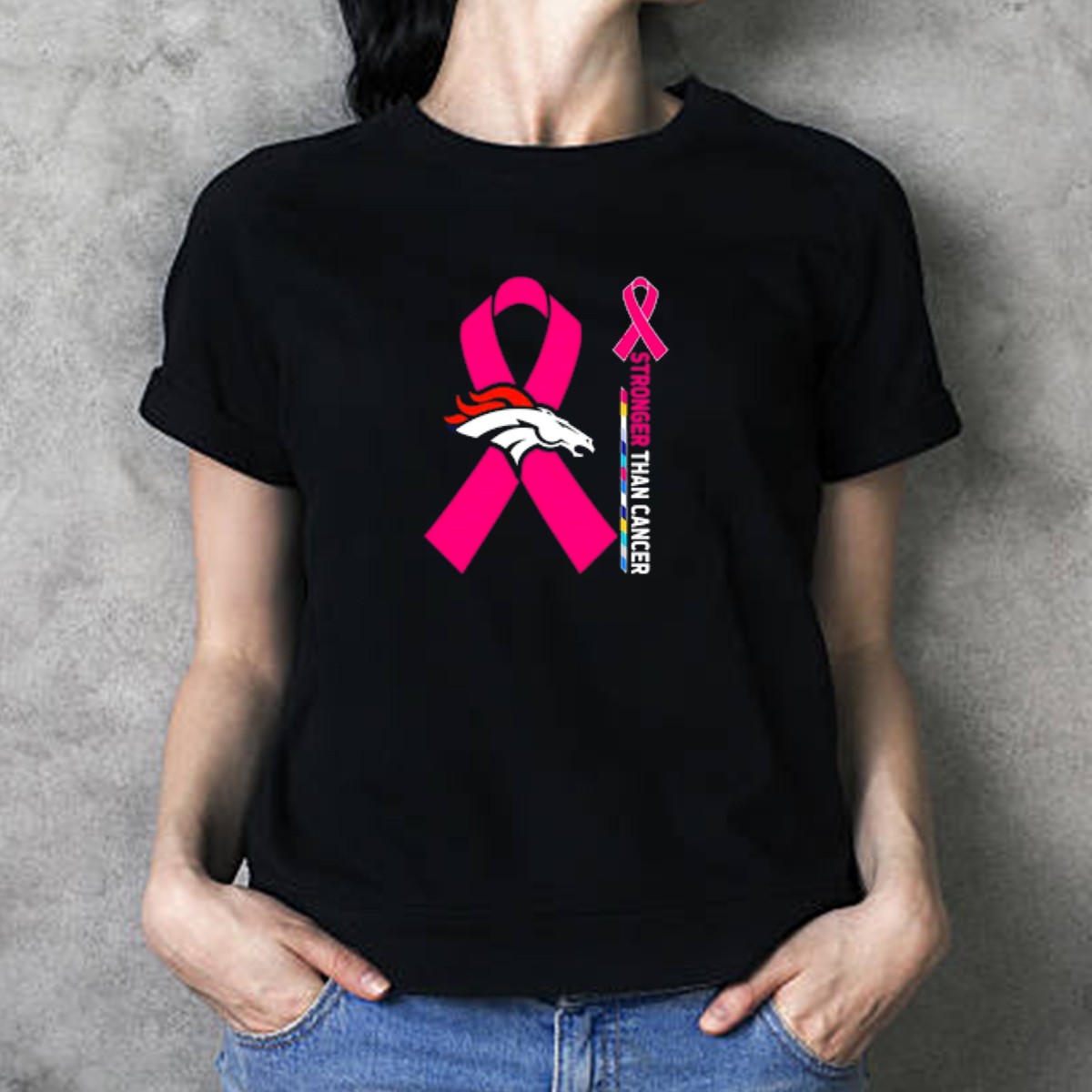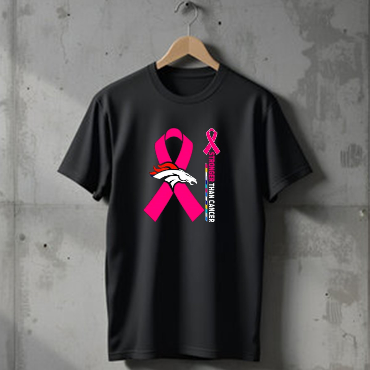 Show your support for the fight against cancer with our Denver Broncos Pink Ribbon Stronger Than Cancer Awareness T-Shirt. This fan-made design combines team spirit with a powerful message, making it perfect for die-hard Broncos fans who want to raise awareness while staying stylish. Ideal for casual outings, themed events, or simply showing your support in daily life, this shirt is a strong statement piece that showcases your commitment to a cause that matters.