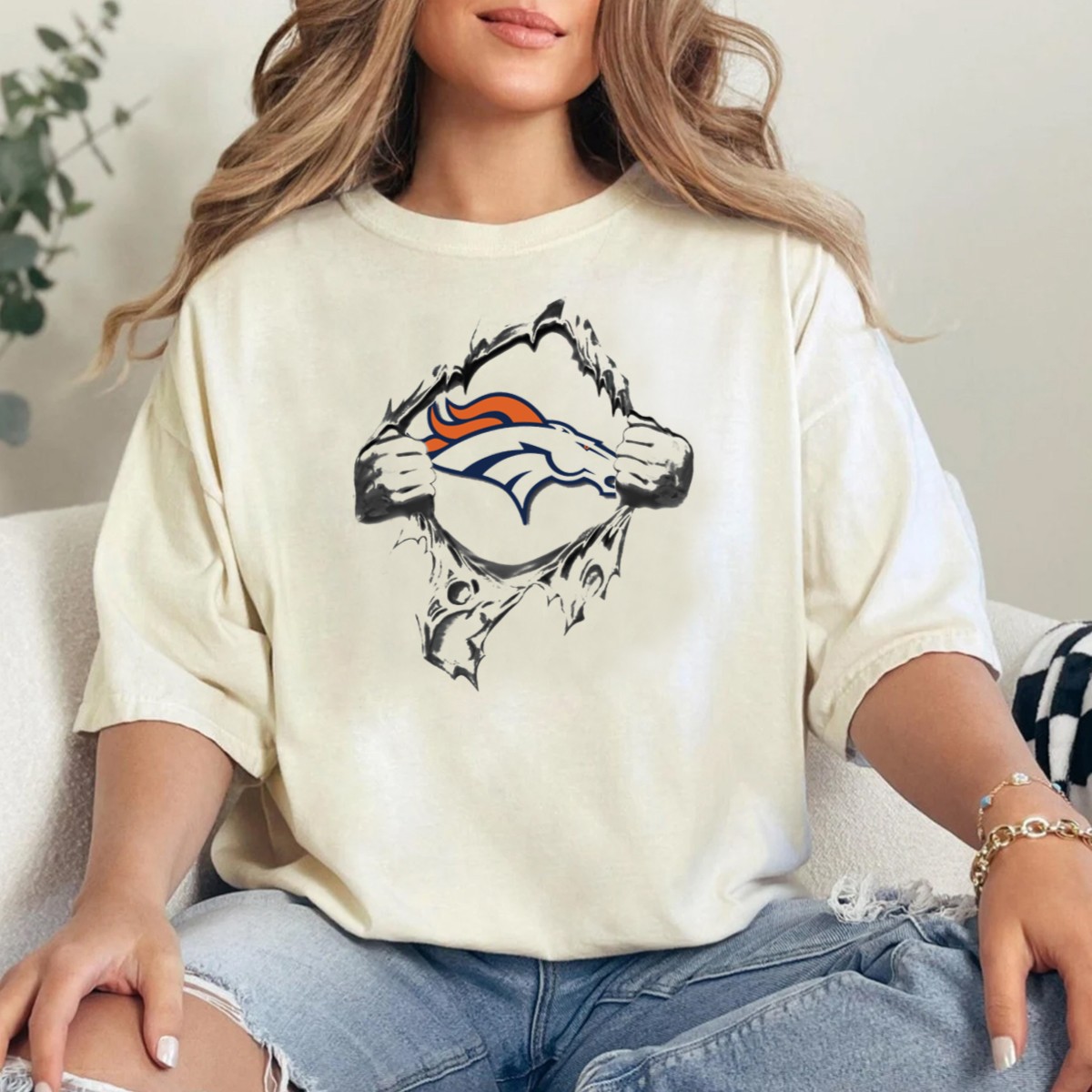 Show your unwavering support for the Denver Broncos with our Ripped Logo Fan T-Shirt! Perfect for die-hard fans and casual wearers alike, this shirt features a bold, fan-made design that captures the spirit of the game. Whether you’re at a themed event, watching the game with friends, or just out and about, this comfortable and stylish tee is your go-to choice for all-season wear.