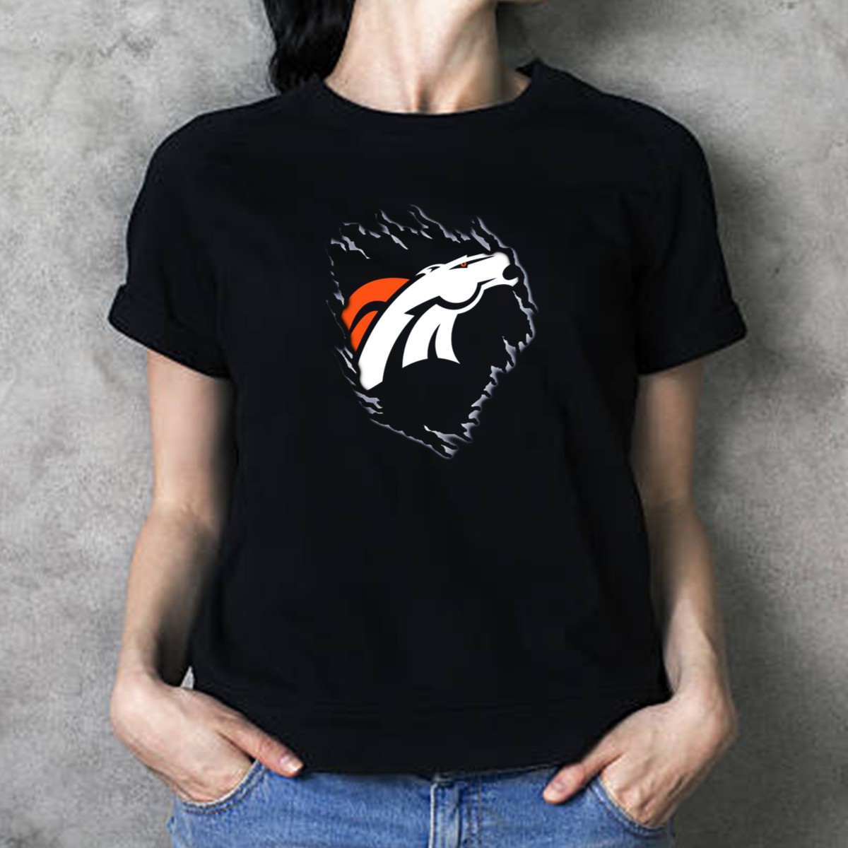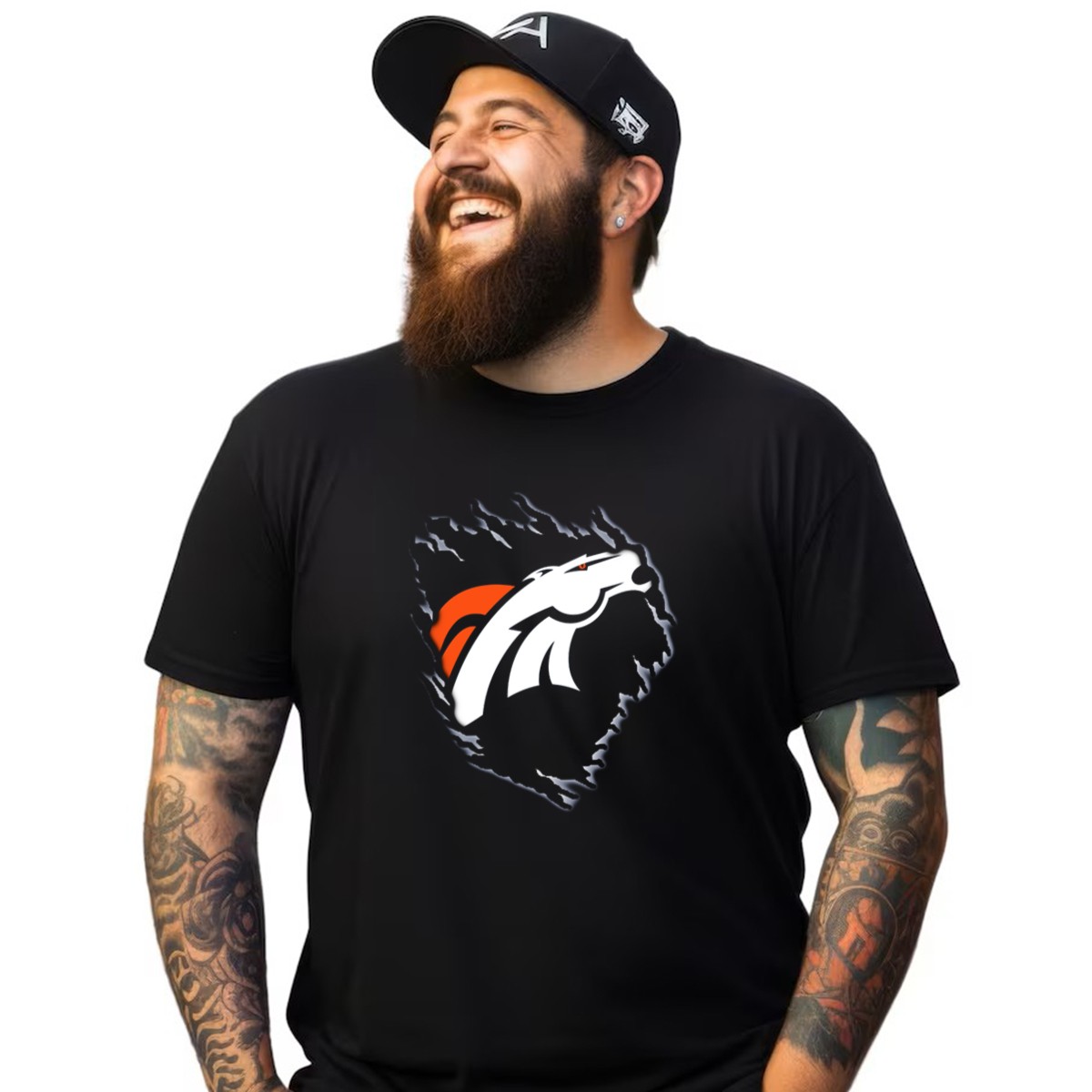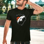 Denver Broncos Ripped Torn Logo Peeling Illusion Dark Blue T-Shirt