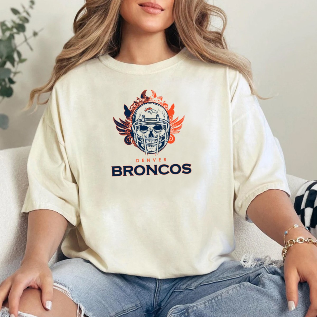 Show off your team spirit in style with our Denver Broncos Skull Helmet Wings T-Shirt! Perfect for passionate fans, this shirt combines a bold graphic design with a comfortable fit, making it ideal for casual outings, themed events, or just lounging around. Crafted for all-season wear, this fan-made piece is printed in the USA, ensuring both quality and authenticity. Stand out while supporting your favorite team!