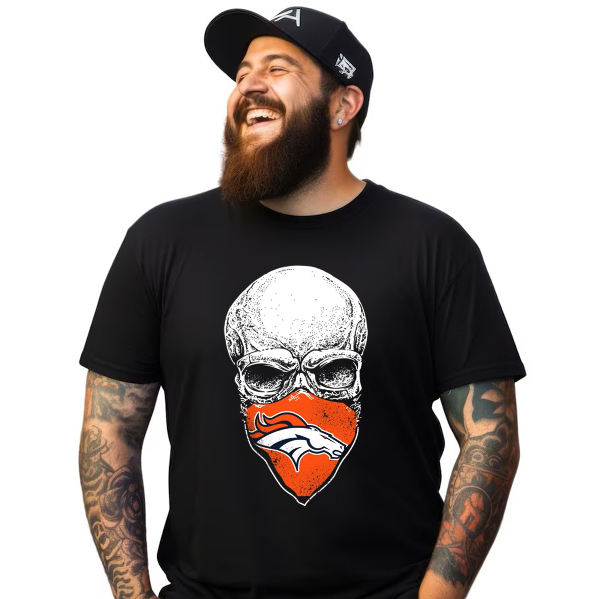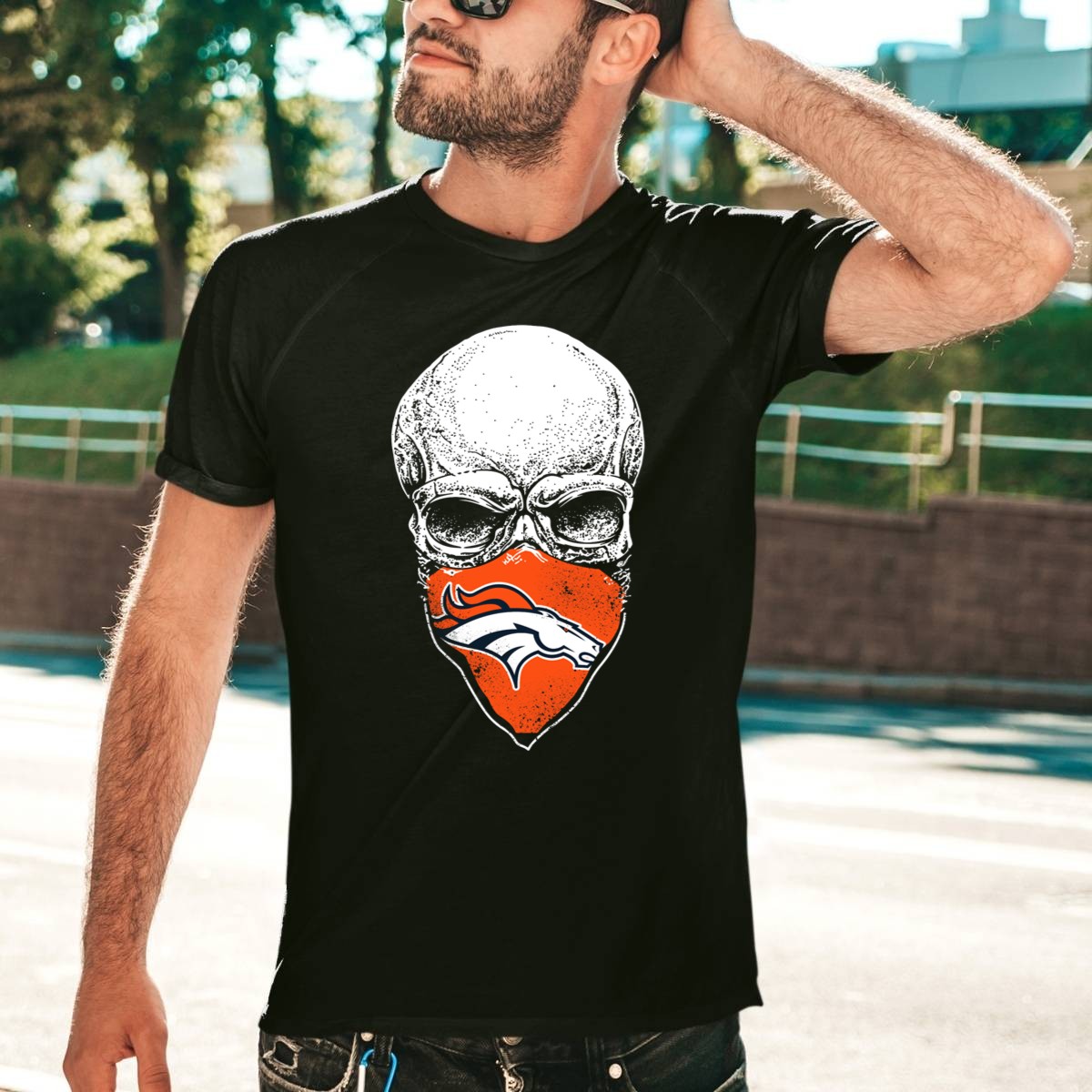 Show off your team spirit with our Denver Broncos Skull Logo Bandana T-Shirt, designed for true fans who love to blend style with passion. Perfect for casual outings, themed events, or everyday wear, this shirt features a striking fan-made design that captures the essence of the Broncos in a unique way. Made from high-quality materials, it ensures you stay comfortable while cheering for your favorite team.