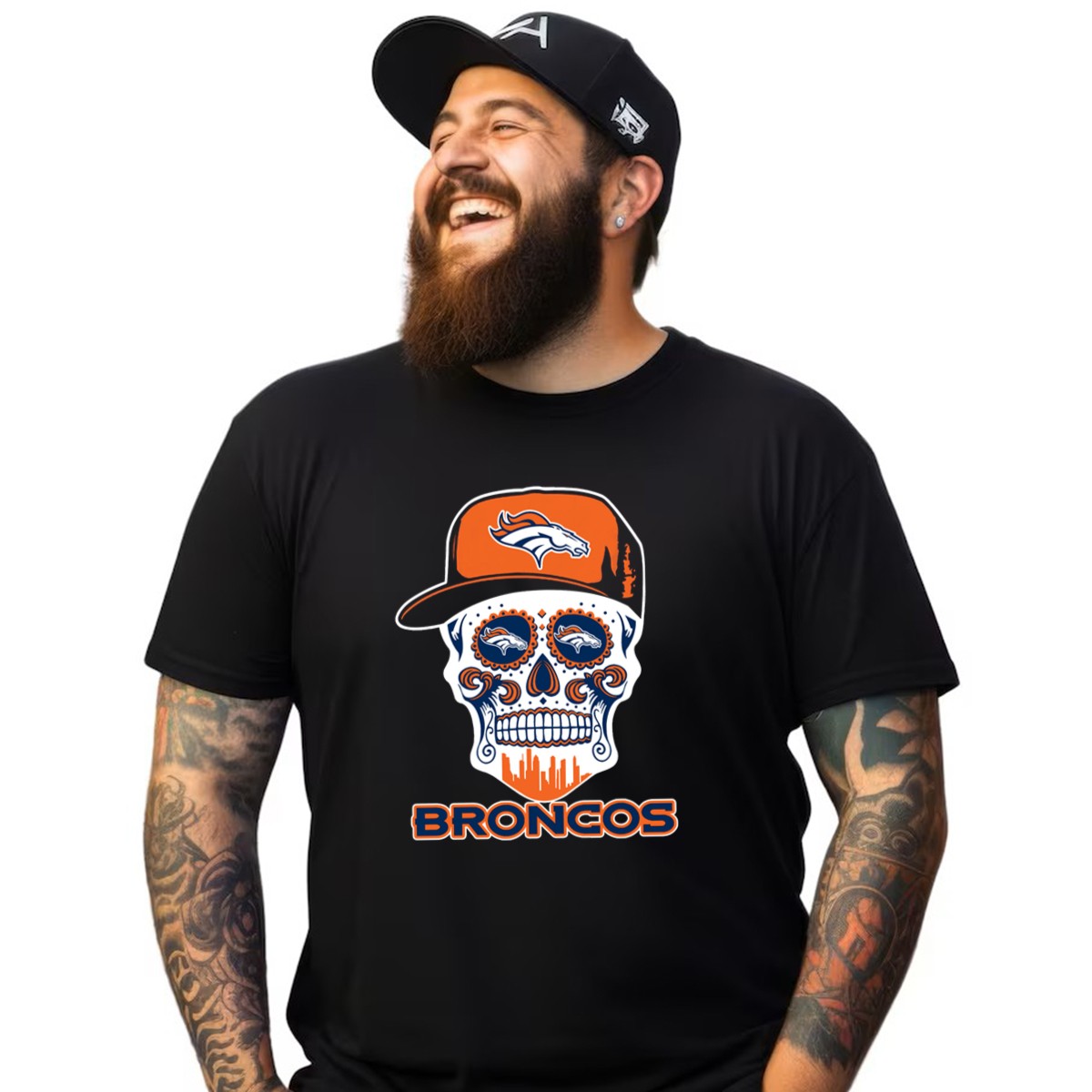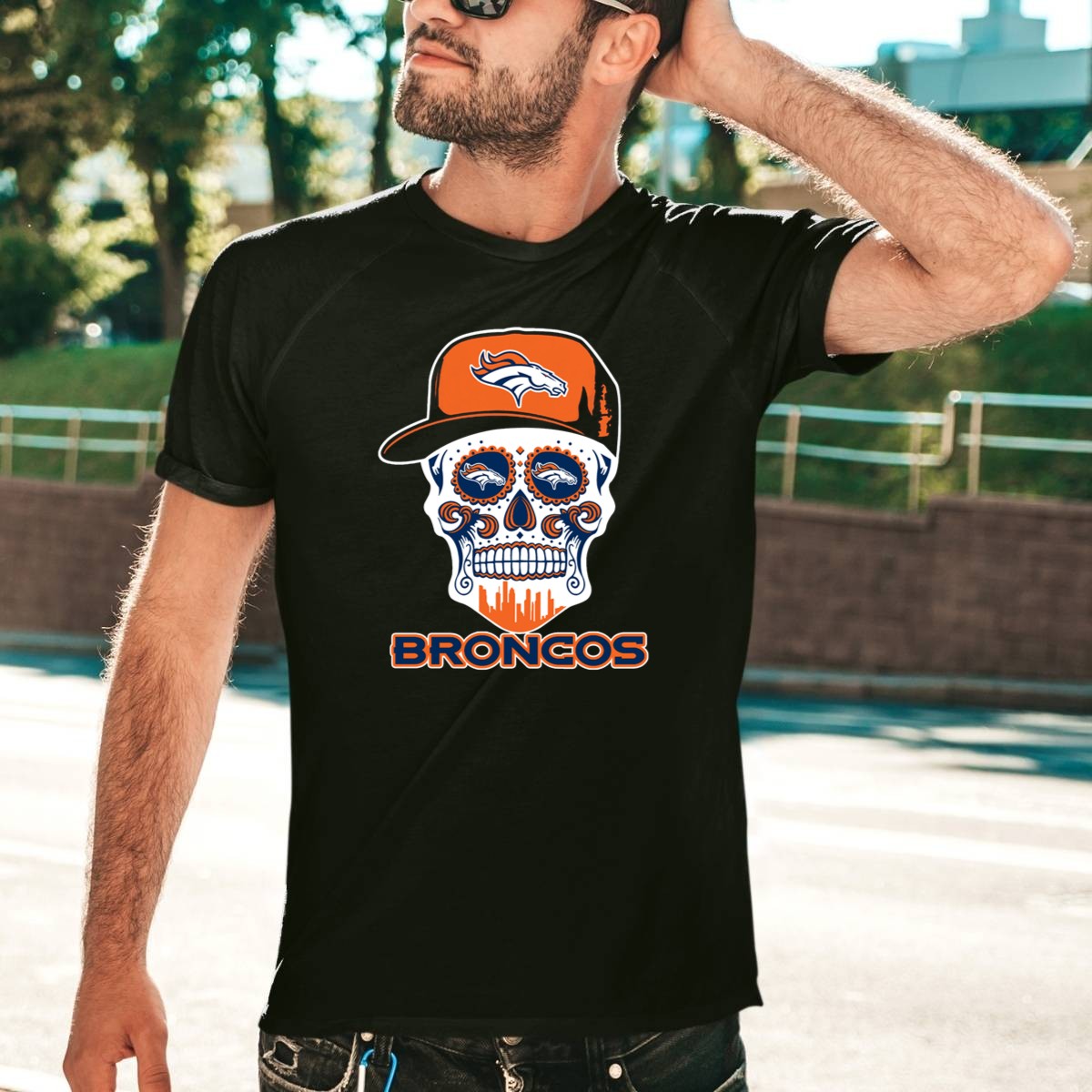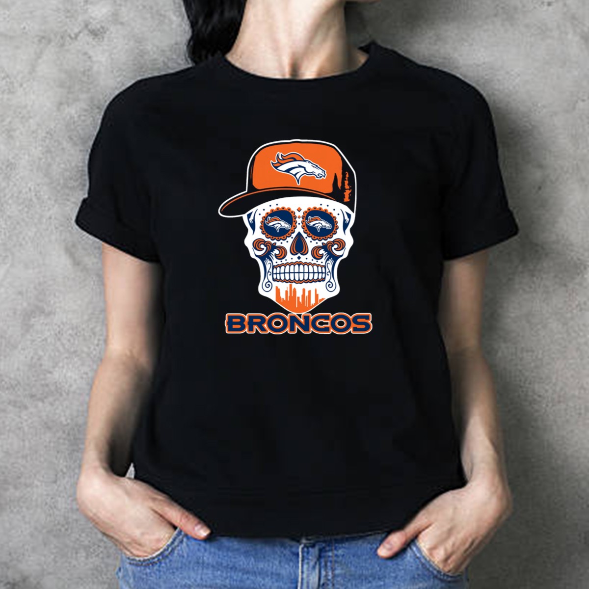 Denver Broncos Skull With Cap And Logos T-Shirt