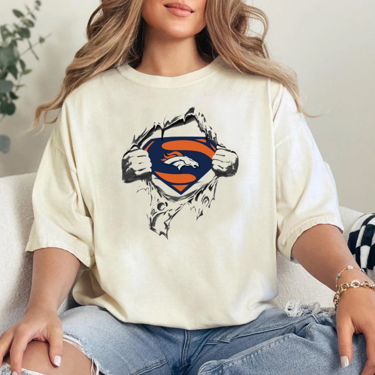 Show your love for the Denver Broncos and embrace your inner superhero with our Denver Broncos Superman Emblem Logo Fusion T-Shirt! This fan-made design perfectly blends two iconic symbols, making it a must-have for die-hard fans and casual wearers alike. Whether you’re cheering from the stands, hanging out with friends, or just enjoying a day out, this shirt is your ultimate style statement that showcases your passion for both the Broncos and the superhero spirit.