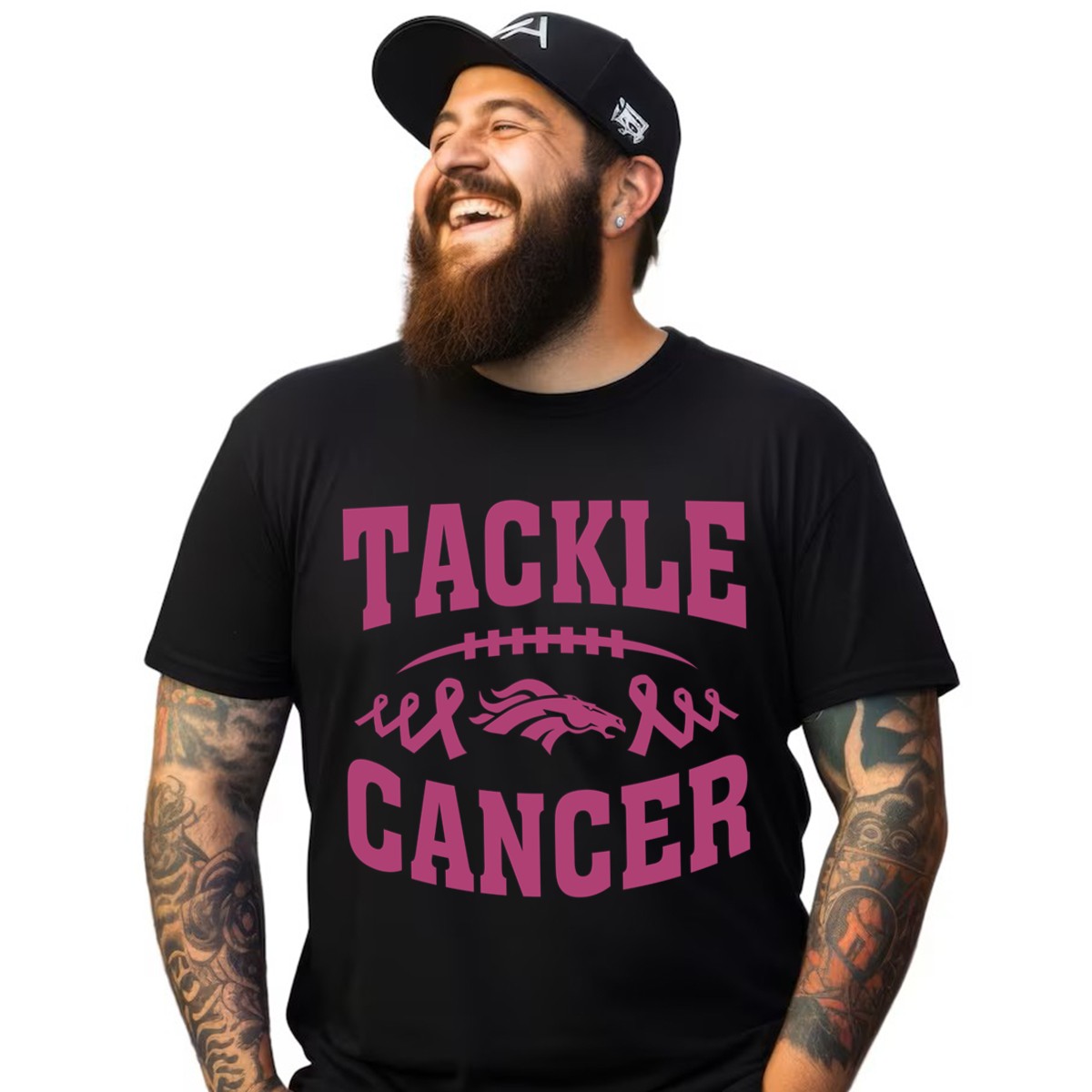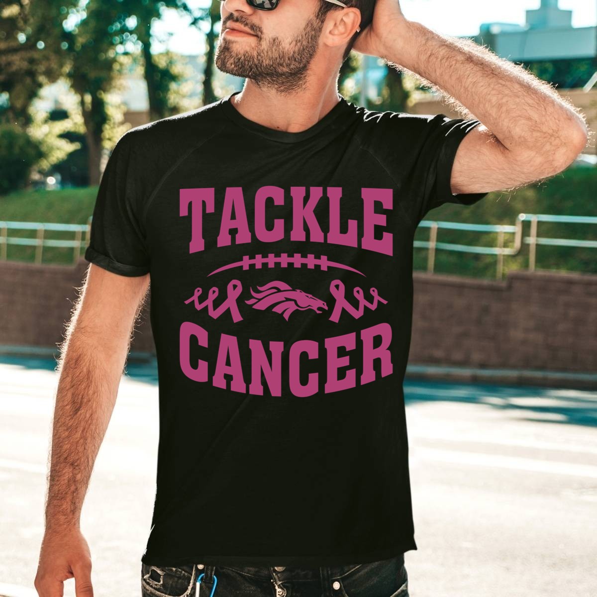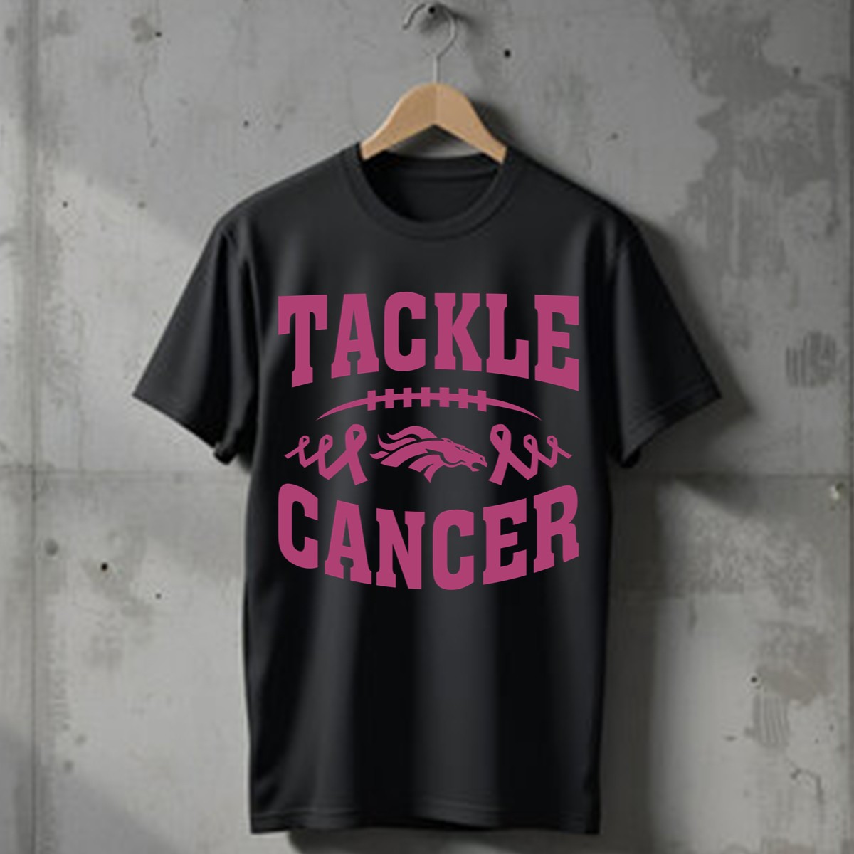 Show your support for a great cause with our Denver Broncos Tackle Breast Cancer T-Shirt! This fan-made design is perfect for die-hard Broncos fans who want to raise awareness while showcasing their team spirit. Whether you’re attending a game, participating in a themed event, or just enjoying a casual day out, this shirt combines comfort and style, making it a must-have for any Broncos enthusiast. Printed right here in the USA, it’s a unique way to contribute to the fight against breast cancer while celebrating your favorite team.