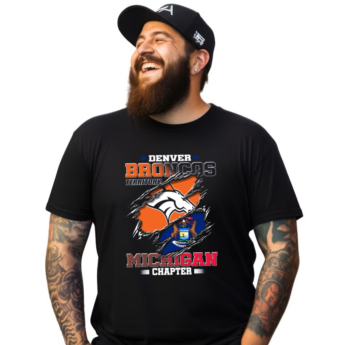 Show off your Denver Broncos pride with our Michigan Chapter T-Shirt, designed for dedicated fans who want to represent their team in style. Made for casual wear, themed events, or daily outings, this fan-made graphic tee is printed in the USA, ensuring you stand out in any crowd. Its classic fit and comfortable design make it the perfect addition to your all-season wardrobe.