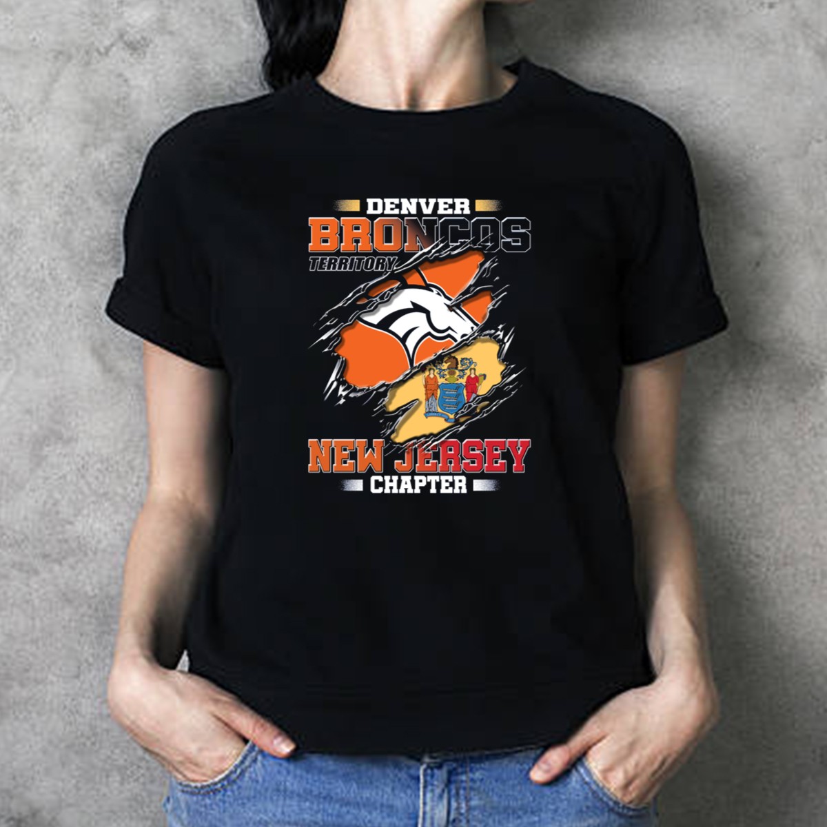 Show off your pride for the Denver Broncos with this fan-made “Denver Broncos Territory New Jersey Chapter” T-shirt. Perfect for die-hard fans, this shirt is designed for casual wear, themed events, or daily outings, making it a versatile addition to any wardrobe. Crafted from soft, durable 100% cotton, it ensures comfort while you cheer on your team, whether you’re at the game or watching from home. Made in the USA, this unique design is a must-have for anyone looking to represent their love for the Broncos in style.