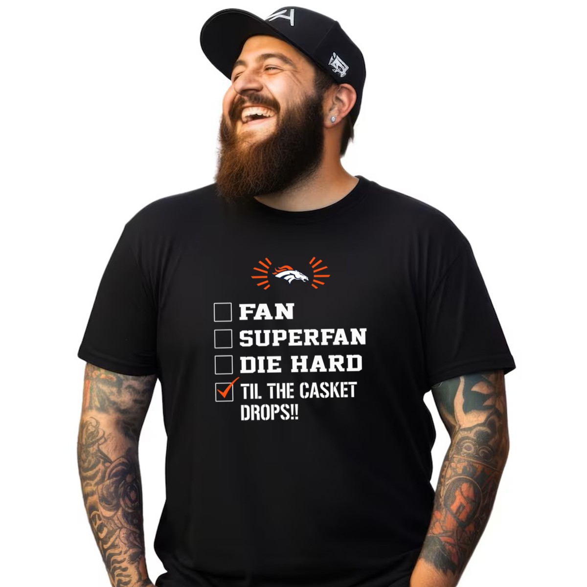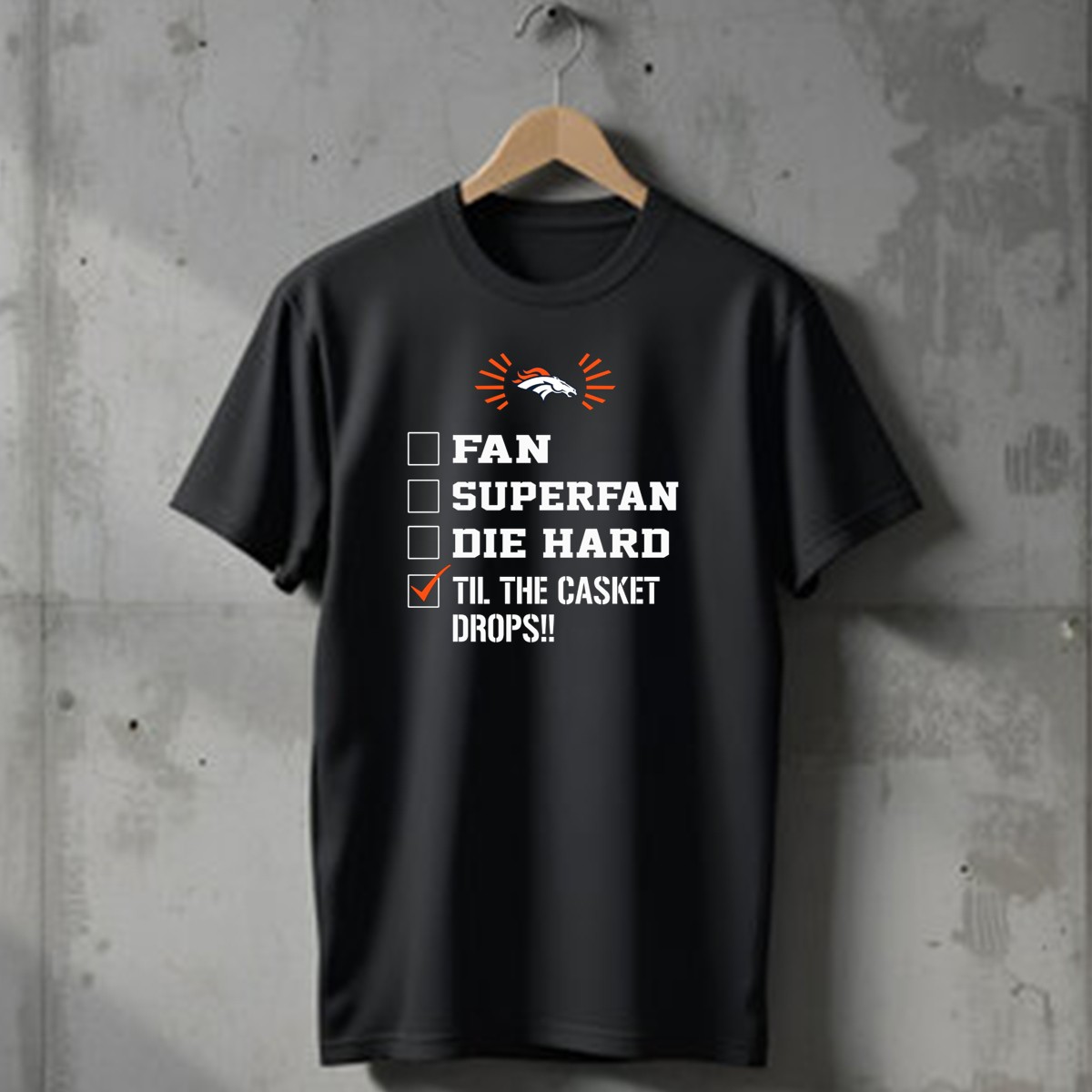 Denver Broncos Til The Casket Drops Fan Superfan Die Hard T-Shirt