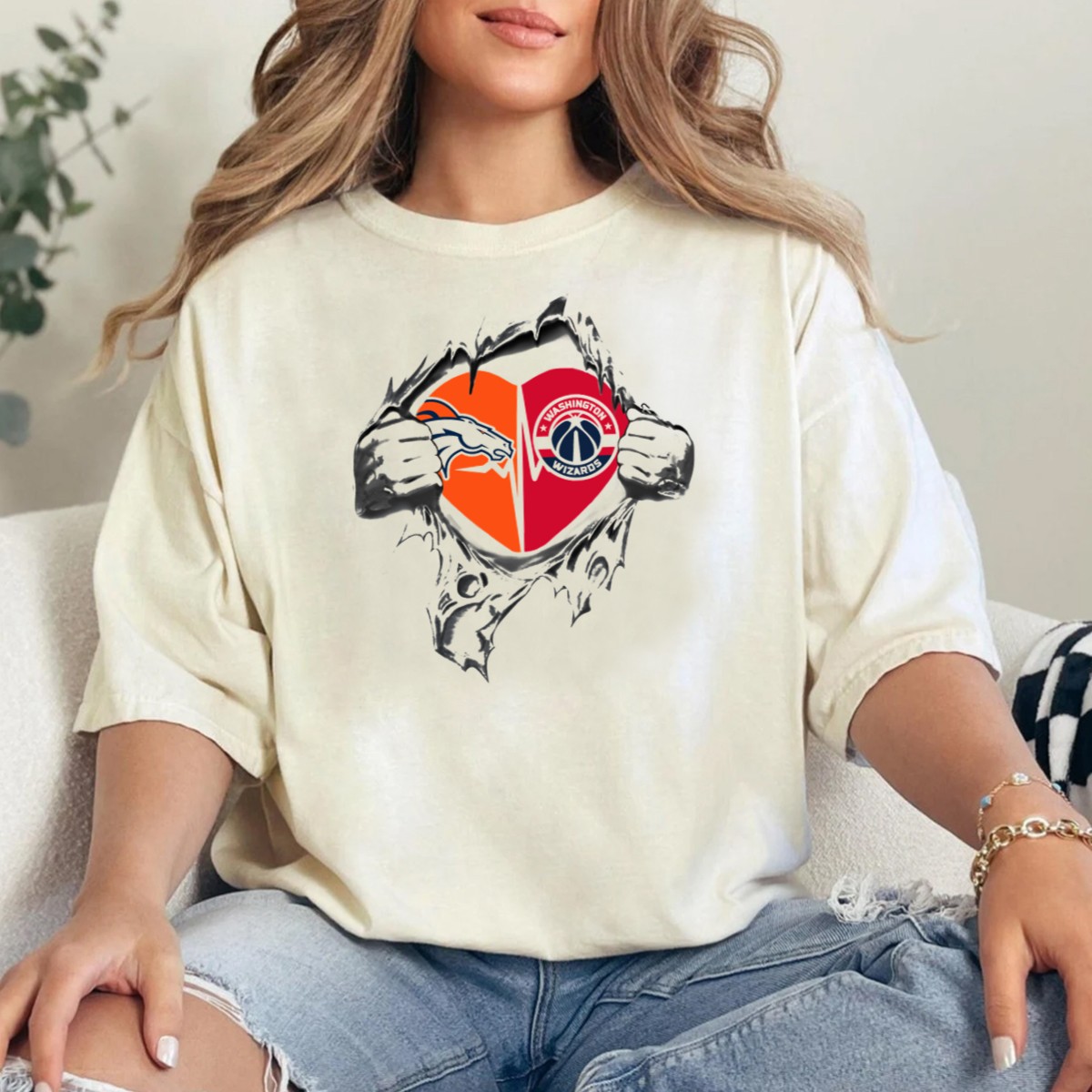 Show your love for both the Denver Broncos and Washington Wizards with this unique fan-made graphic T-shirt! Perfect for sports enthusiasts, this shirt is an ideal choice for casual outings, themed events, or simply relaxing at home. Its eye-catching design, printed in the USA, makes it a standout addition to any wardrobe, allowing you to proudly display your team spirit in style.