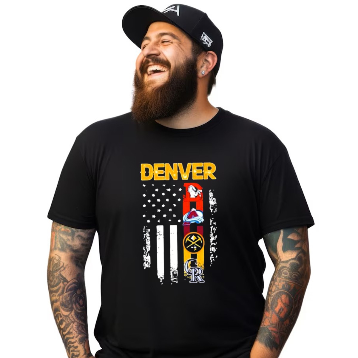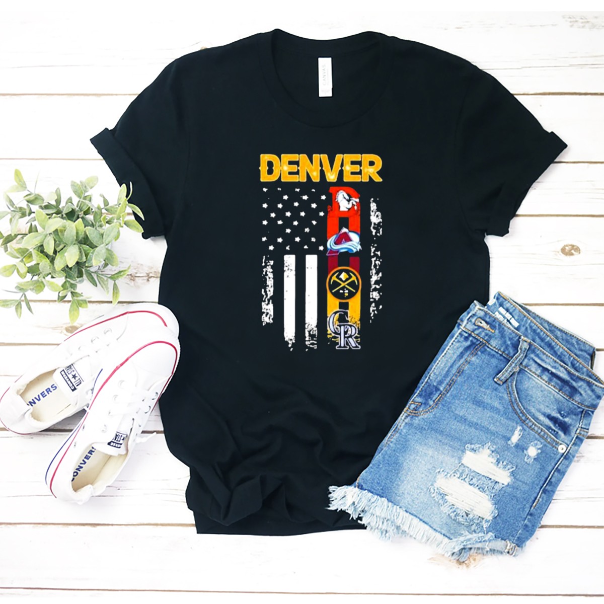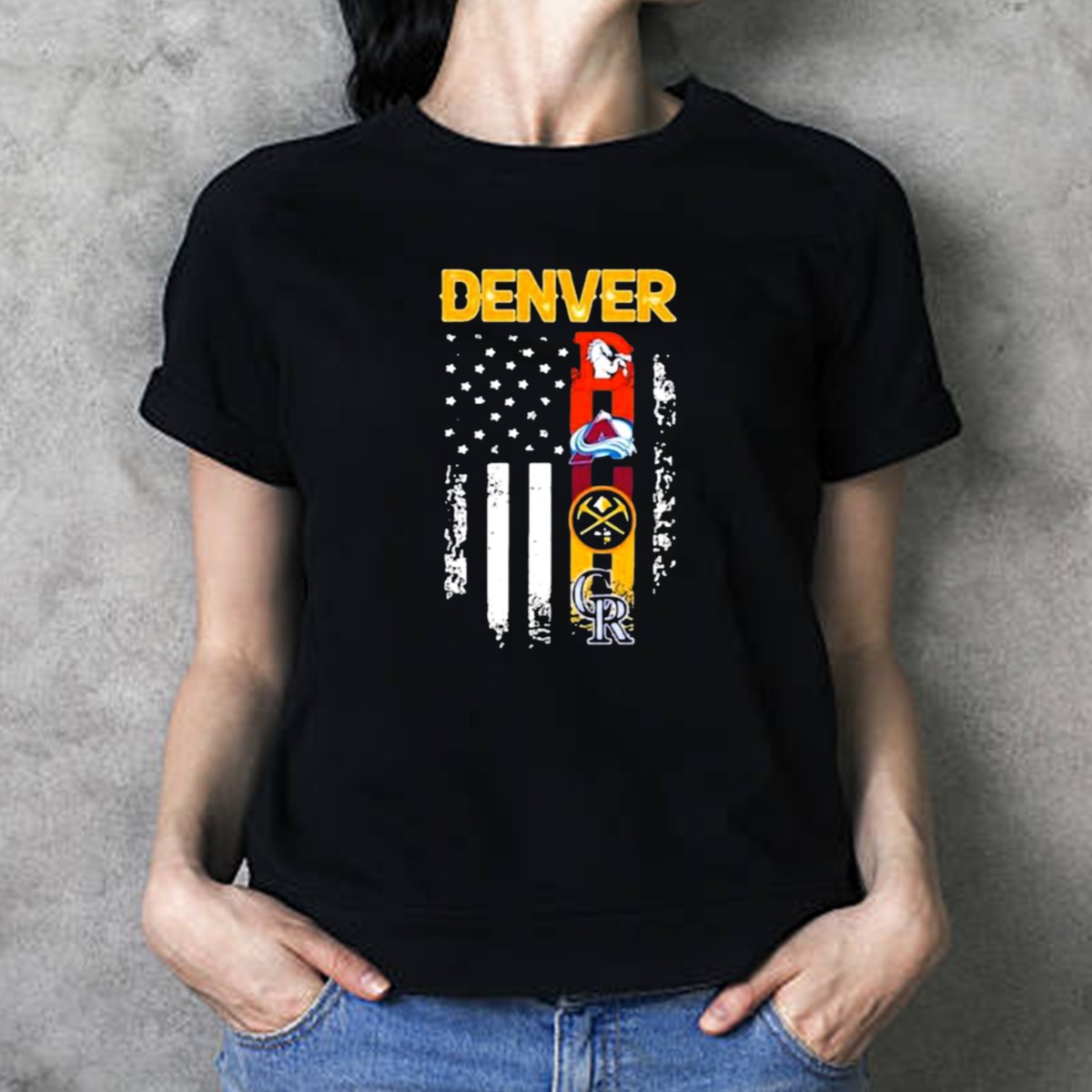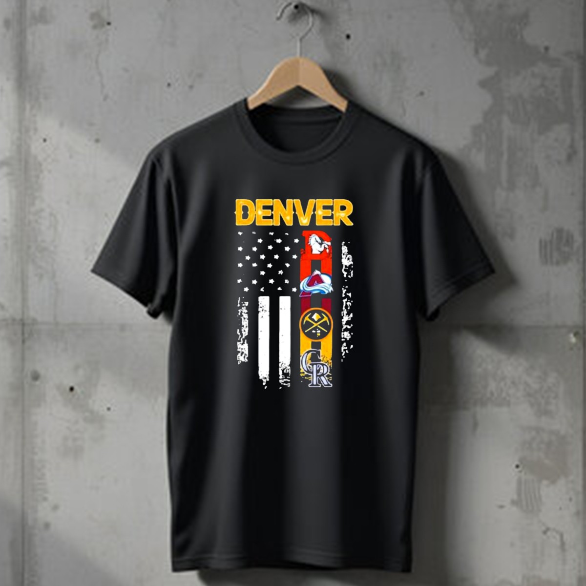 Denver Sports Teams Colorado Rockies Denver Nuggets Denver Broncos Colorado Avalanche USA Flag T-Shirt