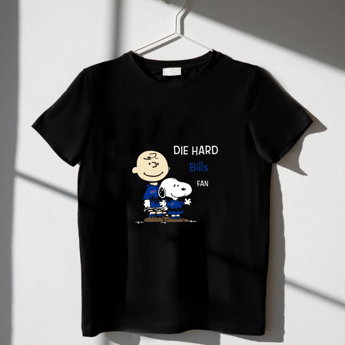 Show off your love for the Buffalo Bills with this fun and casual T-shirt featuring the iconic Snoopy and Charlie Brown. Perfect for die-hard fans and anyone who appreciates a good laugh, this shirt is ideal for game days, themed events, or simply hanging out with friends. Its unique fan-made design, proudly printed in the USA, makes it a standout piece in any casual wardrobe.