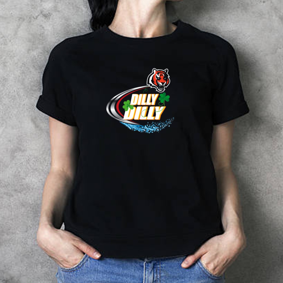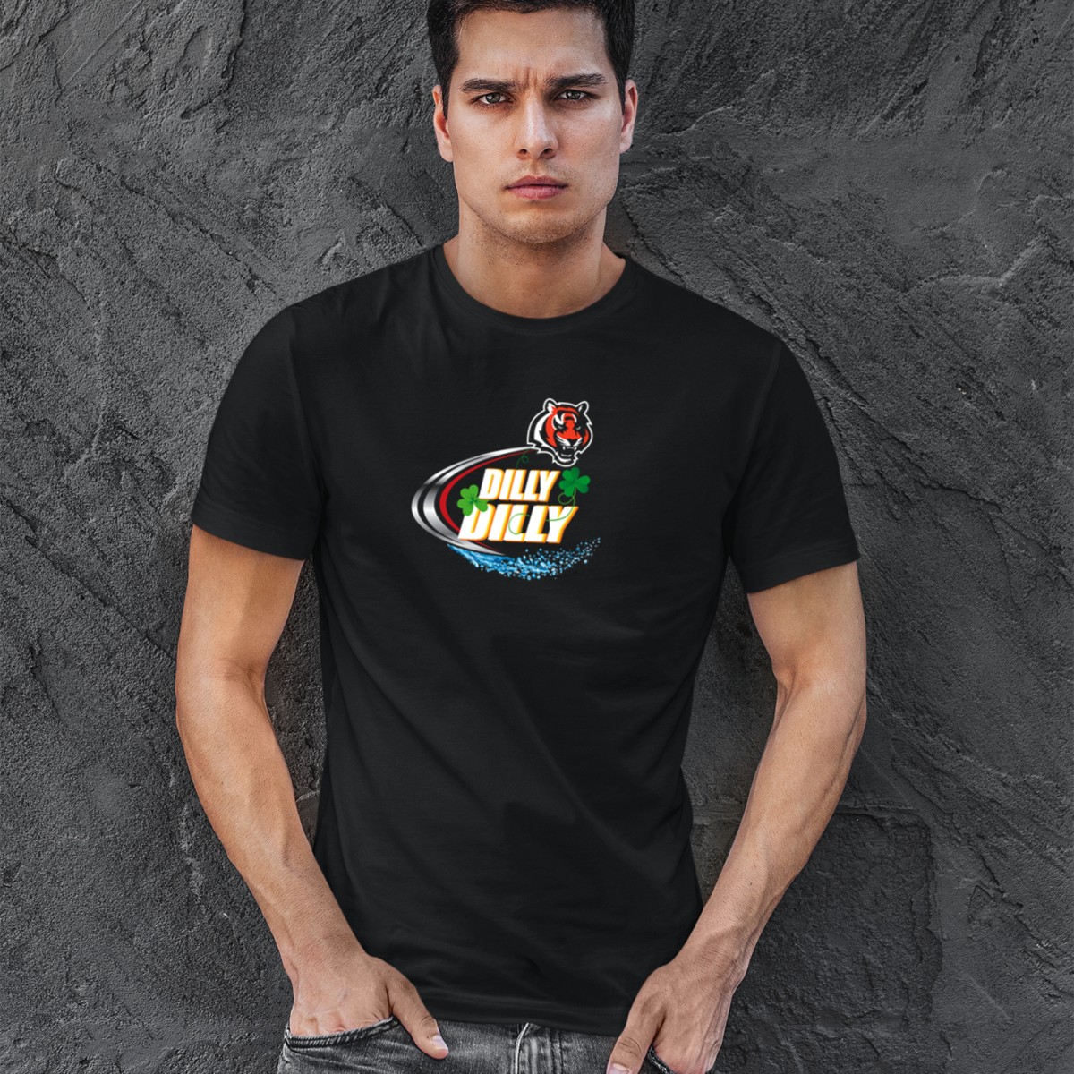 Show off your team spirit with our Dilly Dilly Cincinnati Bengals Tiger Logo Shamrocks Water Splash T-Shirt! Perfect for avid fans and casual wearers alike, this shirt features a vibrant, fan-made design that celebrates the Bengals in a unique and eye-catching way. Whether you’re at a game, hosting a themed event, or just hanging out with friends, this T-shirt is a must-have addition to your wardrobe. Made in the USA, it combines comfort and style for all-season wear.