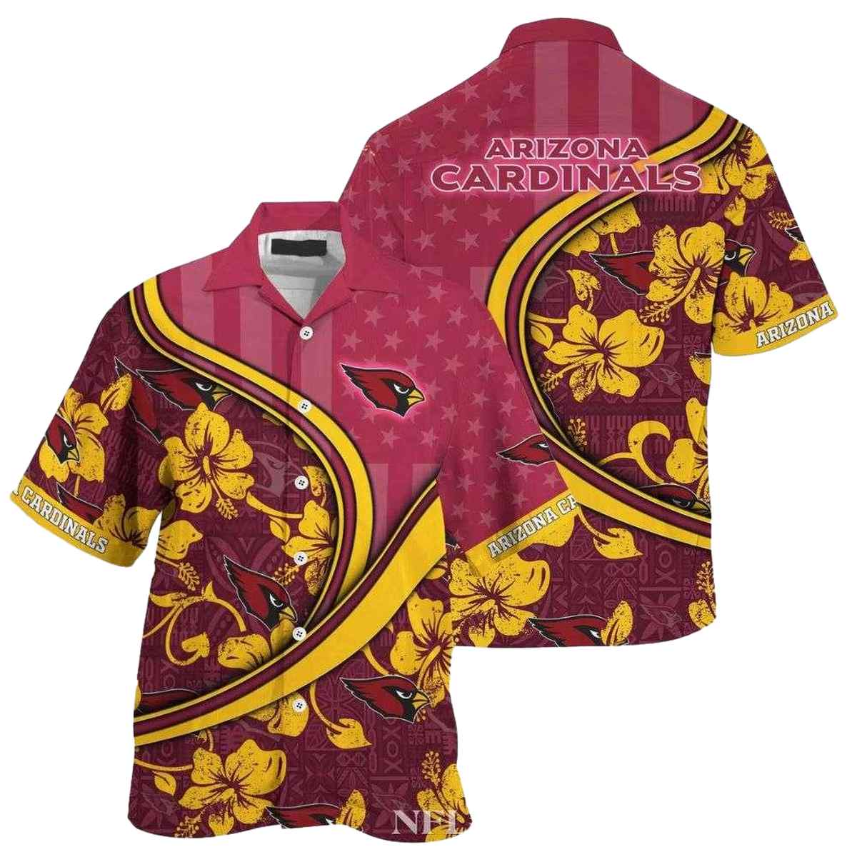 Dynamic Play Arizona Cardinals Hawaiian Shirt Golden Hibiscus Twist