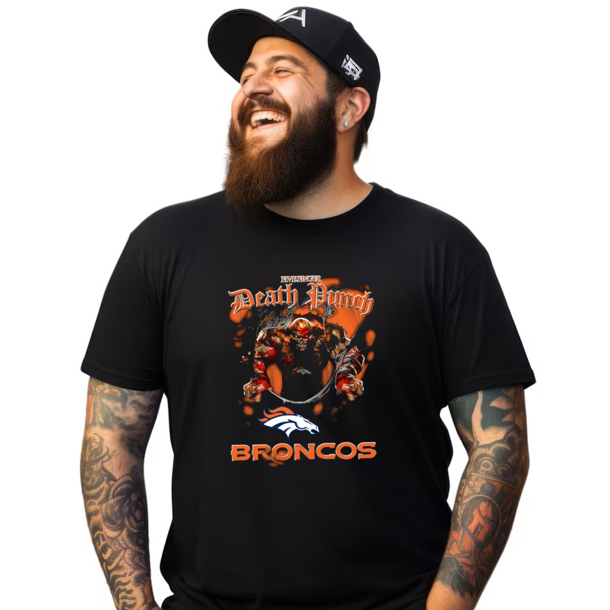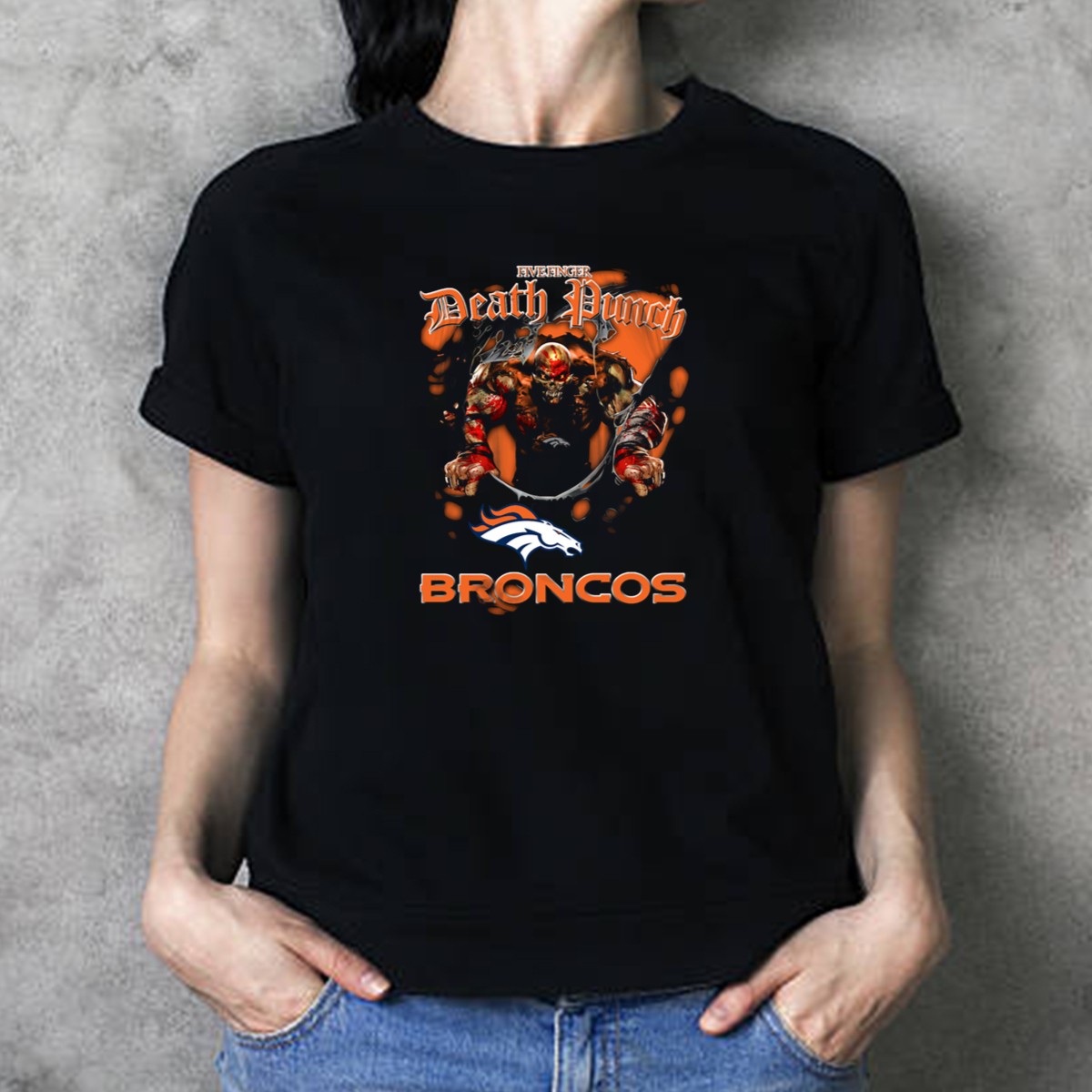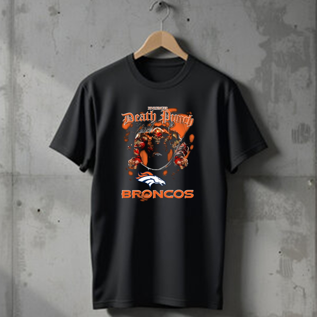 Show your love for both the Five Finger Death Punch and the Denver Broncos with this eye-catching graphic printed T-shirt! Perfect for die-hard fans, this shirt is ideal for casual outings, themed events, or simply rocking your favorite band’s vibe while supporting your team. Made for comfort and style, it’s a must-have for any music and sports enthusiast looking to make a statement.