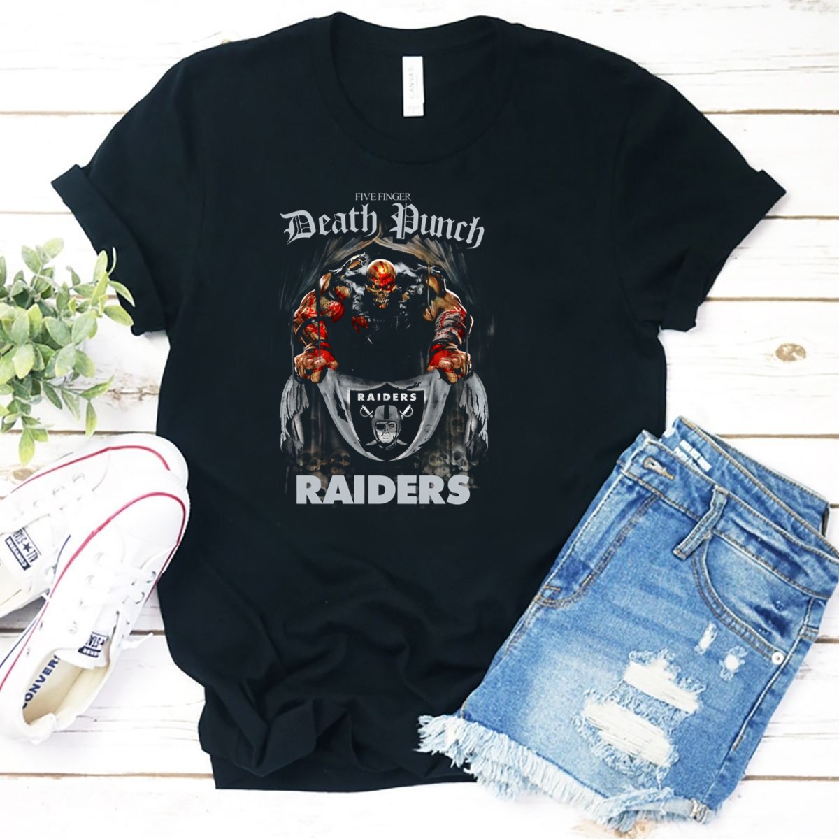 Show your love for both music and football with this fan-made Five Finger Death Punch Oakland Raiders T-Shirt. Perfect for die-hard fans, this shirt combines the energy of your favorite band with the spirit of the Raiders, making it an ideal choice for casual outings, themed events, or everyday wear. Crafted for comfort and style, this shirt is a must-have for anyone looking to showcase their passion in a unique way.