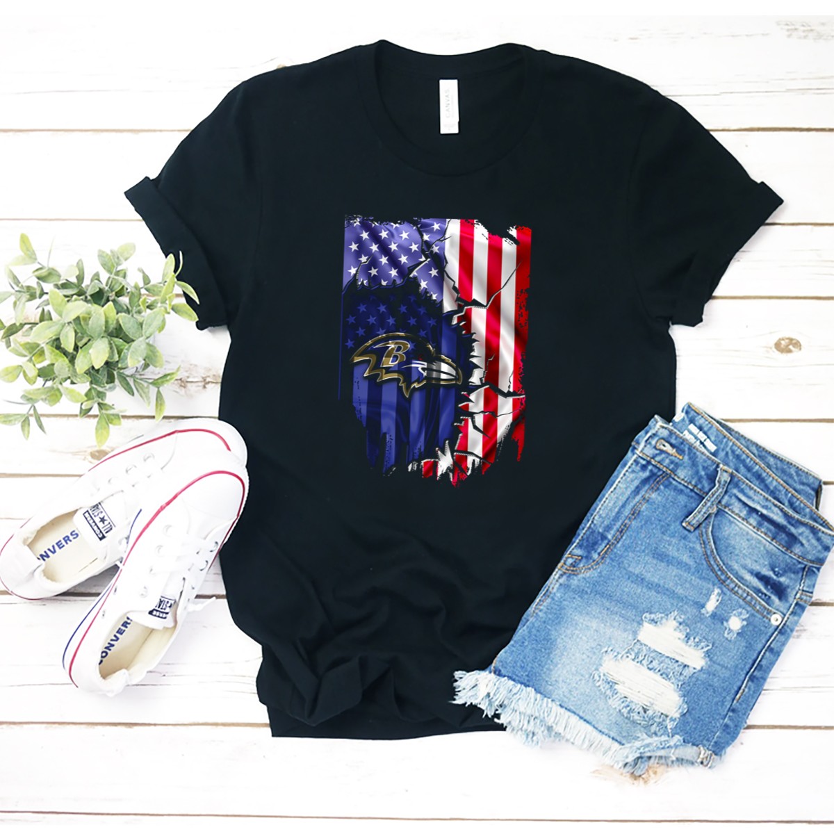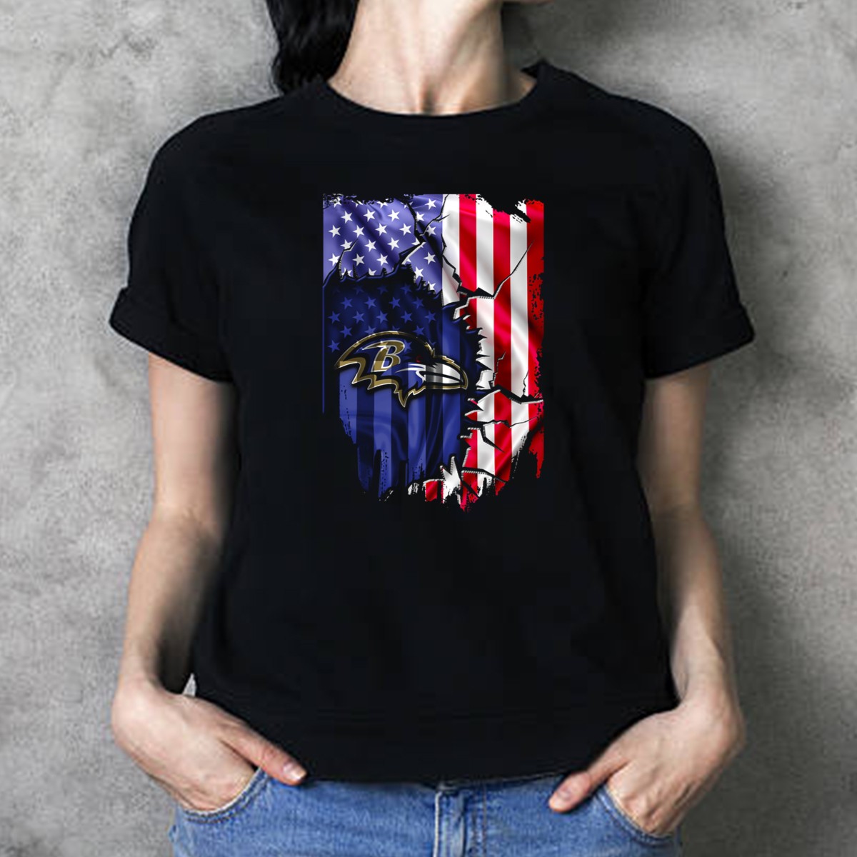 Show your team spirit with our Flag Baltimore Ravens American Flag Stars and Stripes T-shirt! Perfect for die-hard Ravens fans, this shirt features a unique fan-made design that combines the iconic Ravens logo with a patriotic twist. Whether you’re cheering from the stands, hosting a themed event, or just enjoying a casual day out, this tee is a must-have for showcasing your love for the game and your country in style.